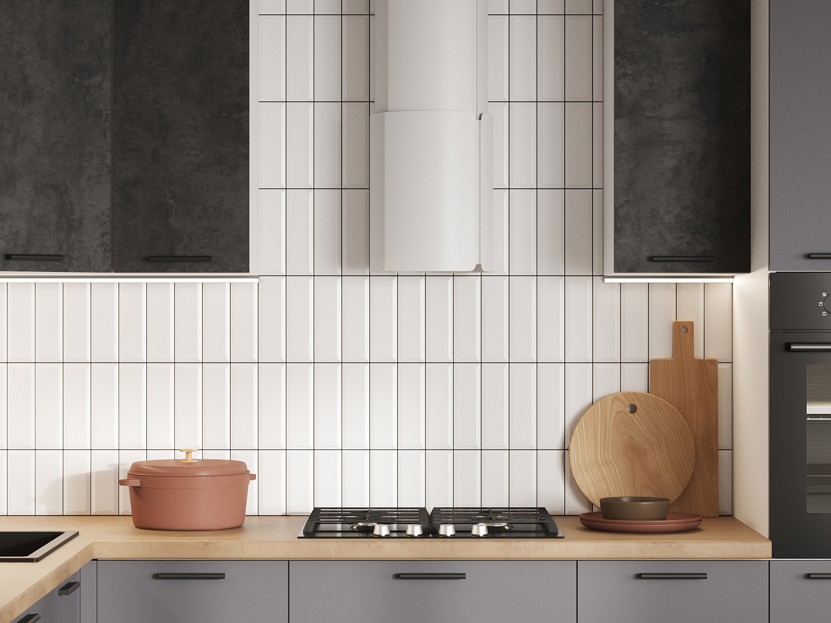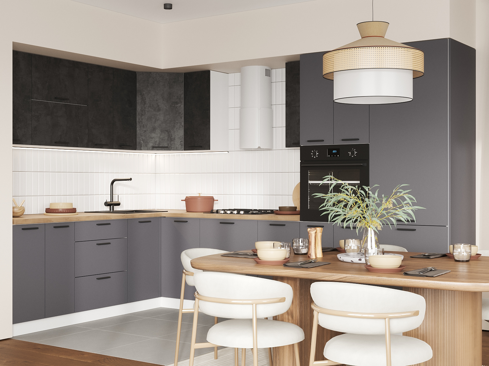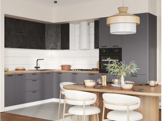 Кухонный гарнитур Модус 320х220 см Белый / Цемент темный / Графит серый