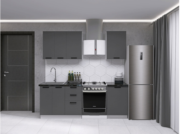 Кухонный гарнитур Модус 150 см с ящиками Белый / Графит серый