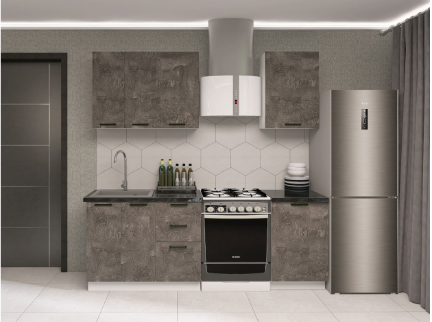 Кухонный гарнитур Модус 150 см с ящиками Белый / Камень темный