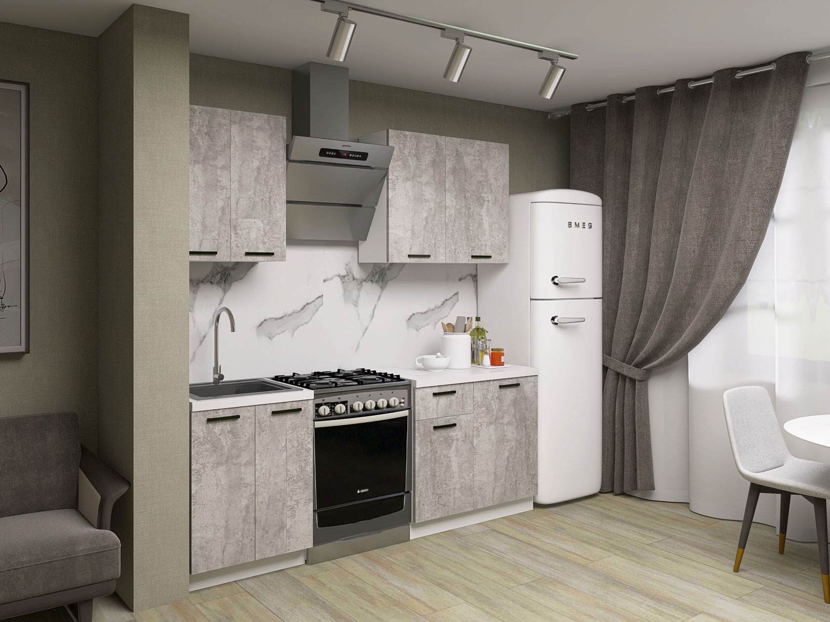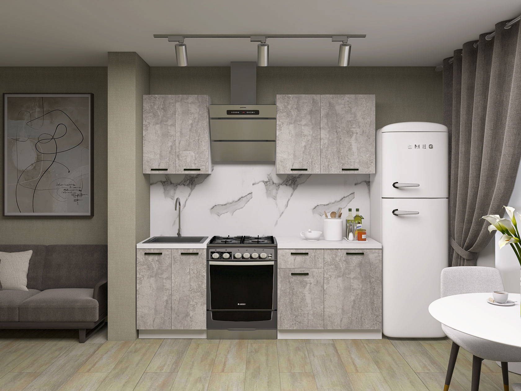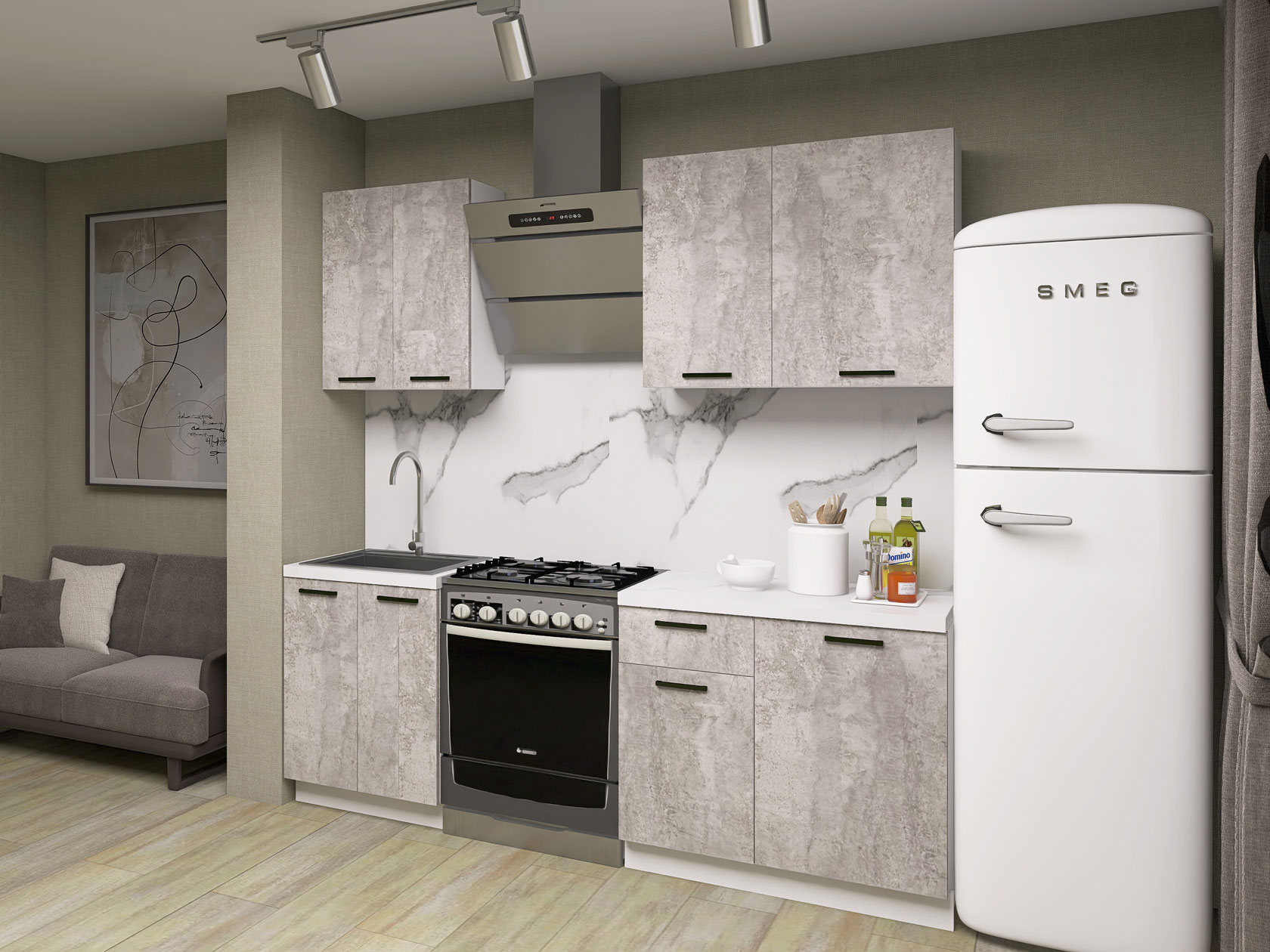 Кухонный гарнитур Модус 150 см Белый / Цемент светлый