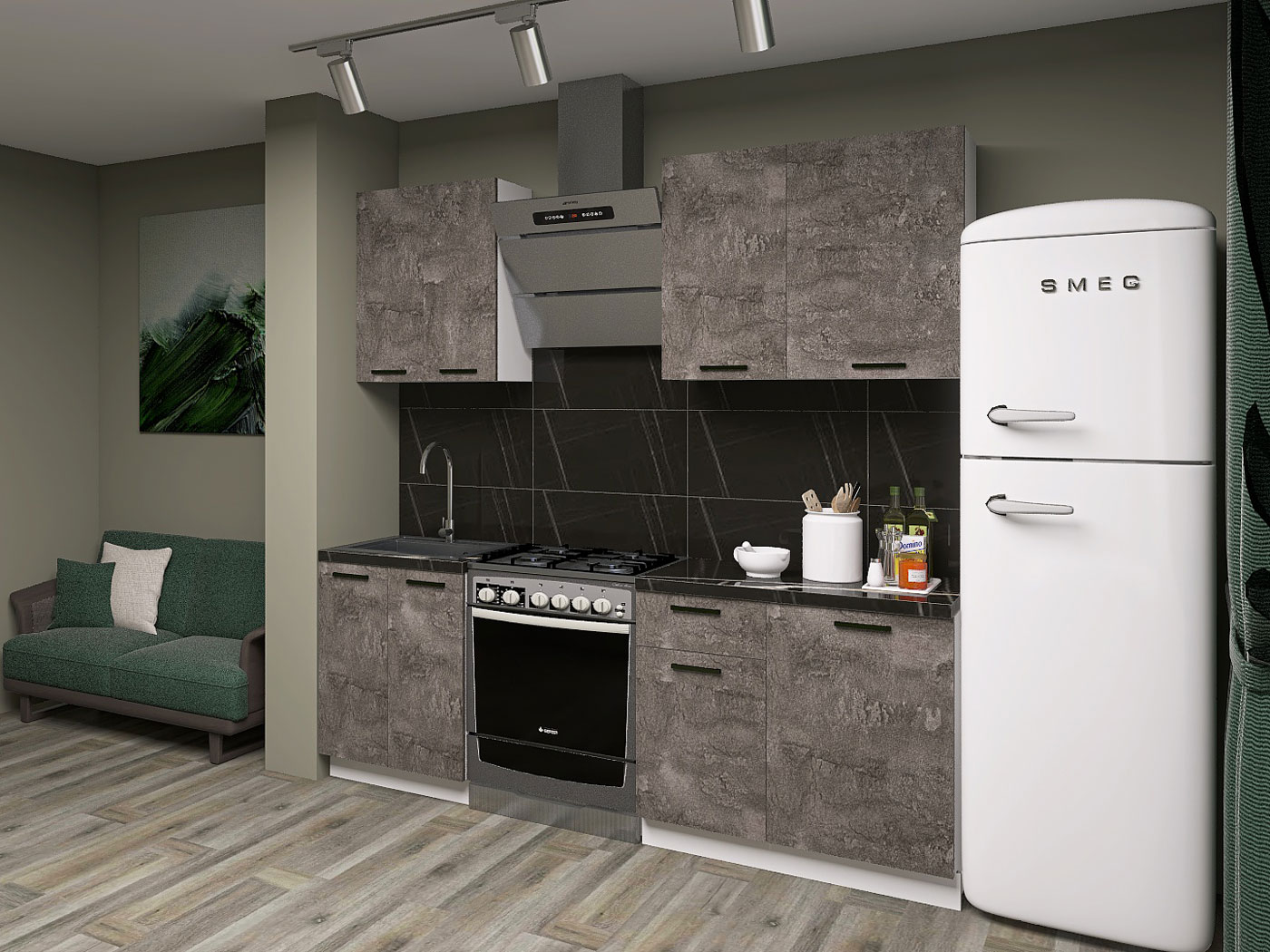 Кухонный гарнитур Модус 150 см Белый / Камень темный