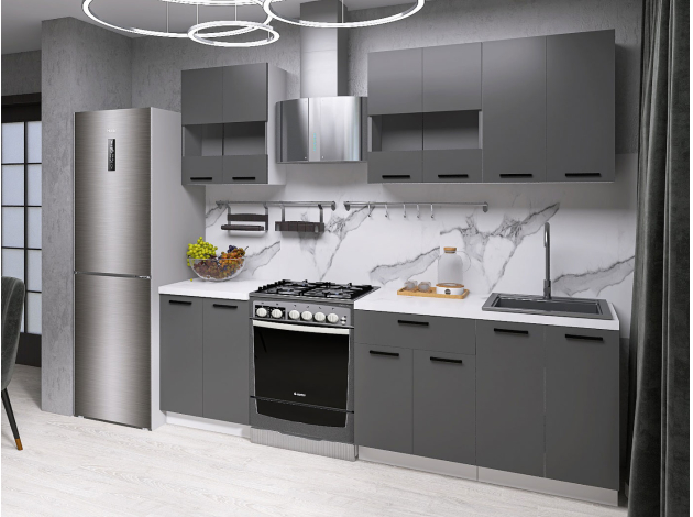 Кухонный гарнитур Модус 180 см со стеклом Белый / Графит серый со стеклом