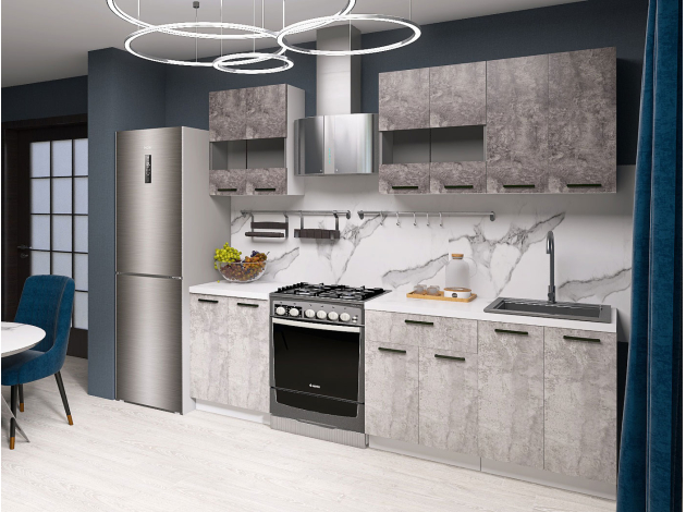Кухонный гарнитур Модус 180 см со стеклом Белый / Цемент темный со стеклом / Цемент светлый