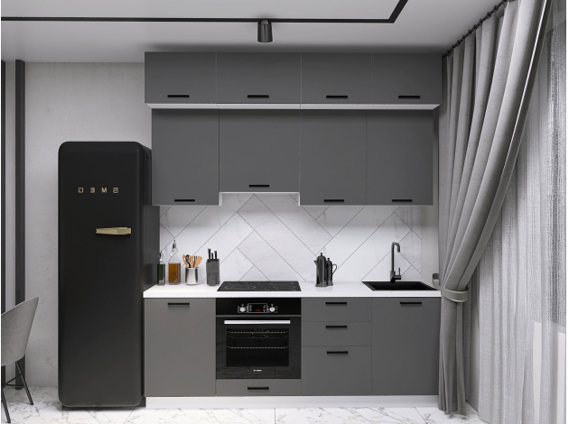 Кухонный гарнитур Модус 210 см подходит для помещений, где необходимо эффективно использовать каждый сантиметр пространства. Набор включает практичные элементы, которые станут идеальной зоной для хранения посуды, кухонных принадлежностей и других нужных предметов.