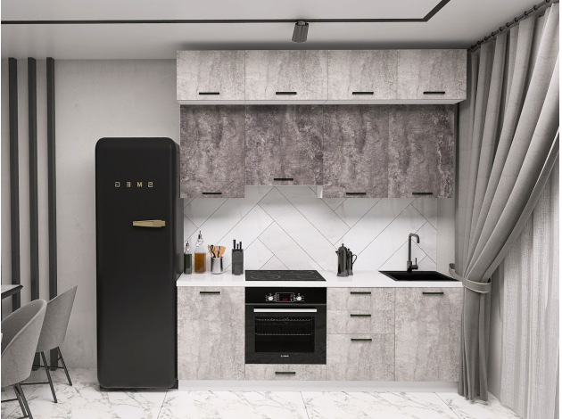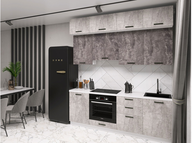 Кухонный гарнитур Модус 210 см подходит для помещений, где необходимо эффективно использовать каждый сантиметр пространства. Набор включает практичные элементы, которые станут идеальной зоной для хранения посуды, кухонных принадлежностей и других нужных предметов.