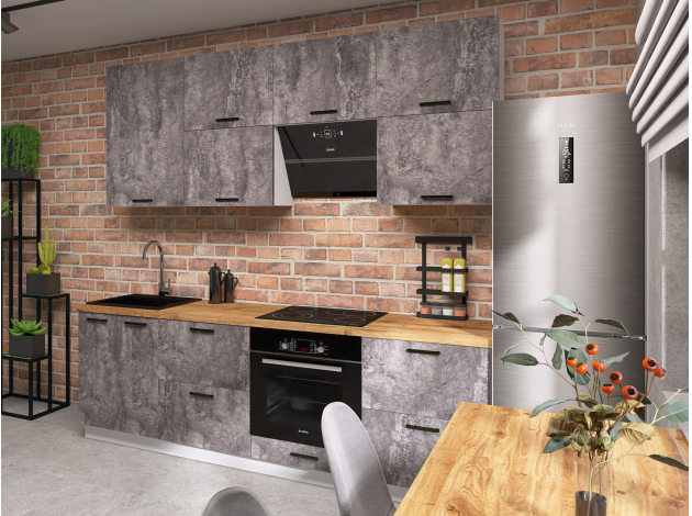 Кухонный гарнитур Модус 240 см с антресолями Белый / Цемент темный