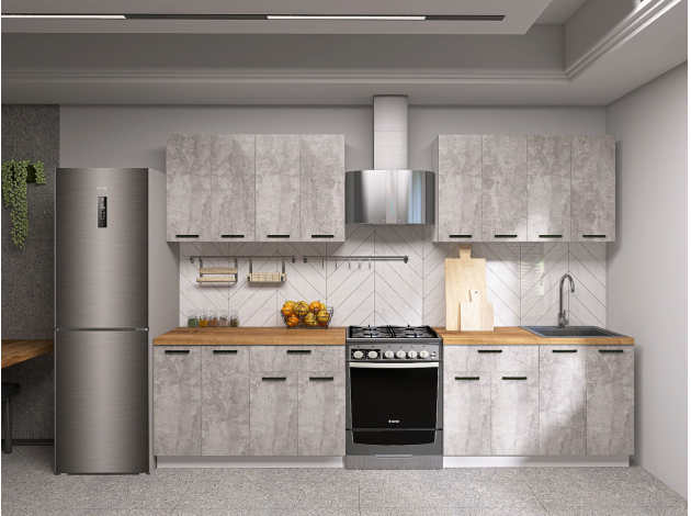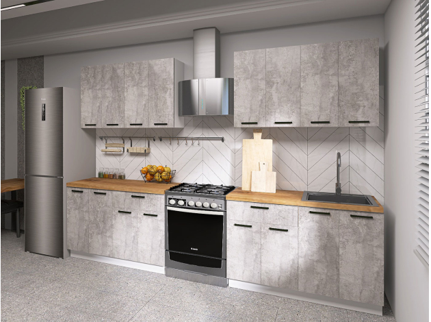 Кухонный гарнитур Модус 240 см Белый / Цемент светлый