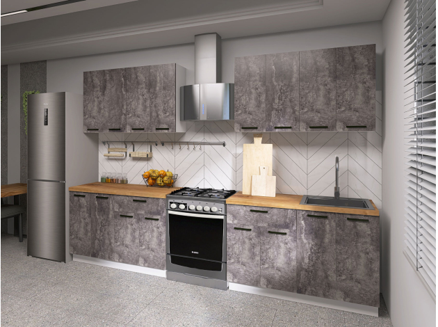 Кухонный гарнитур Модус 240 см поможет создать эстетичное и функциональное пространство. Прямая конфигурация и небольшие габариты делают комплект идеальным выбором для квартиры-студии. Набор включает практичные элементы для хранения и позволяет обустроить удобную рабочую поверхность.