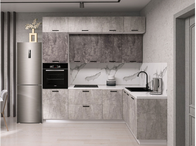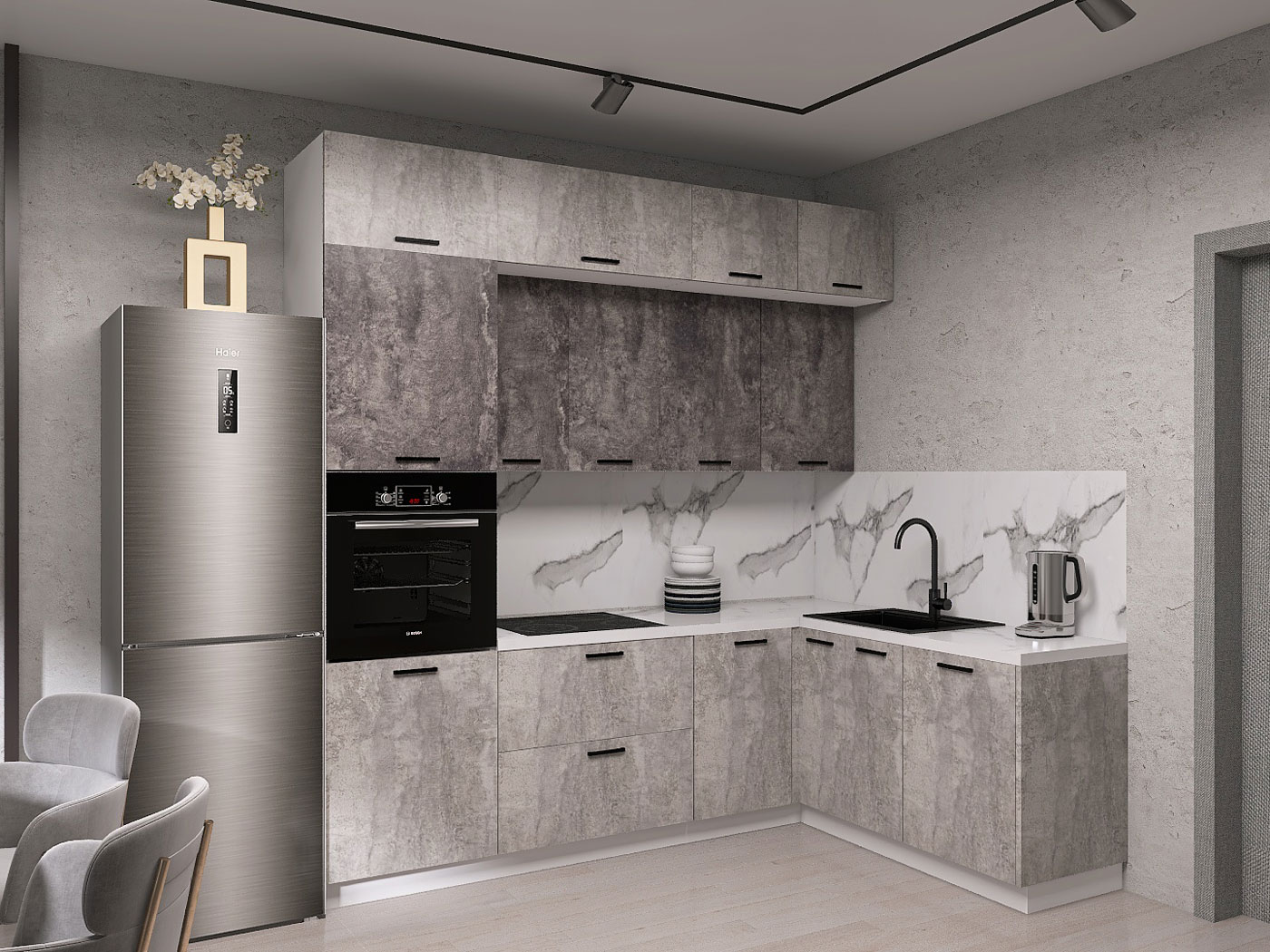 Кухонный гарнитур Модус 240х160 см Белый / Цемент светлый / Цемент темный / Цемент светлый