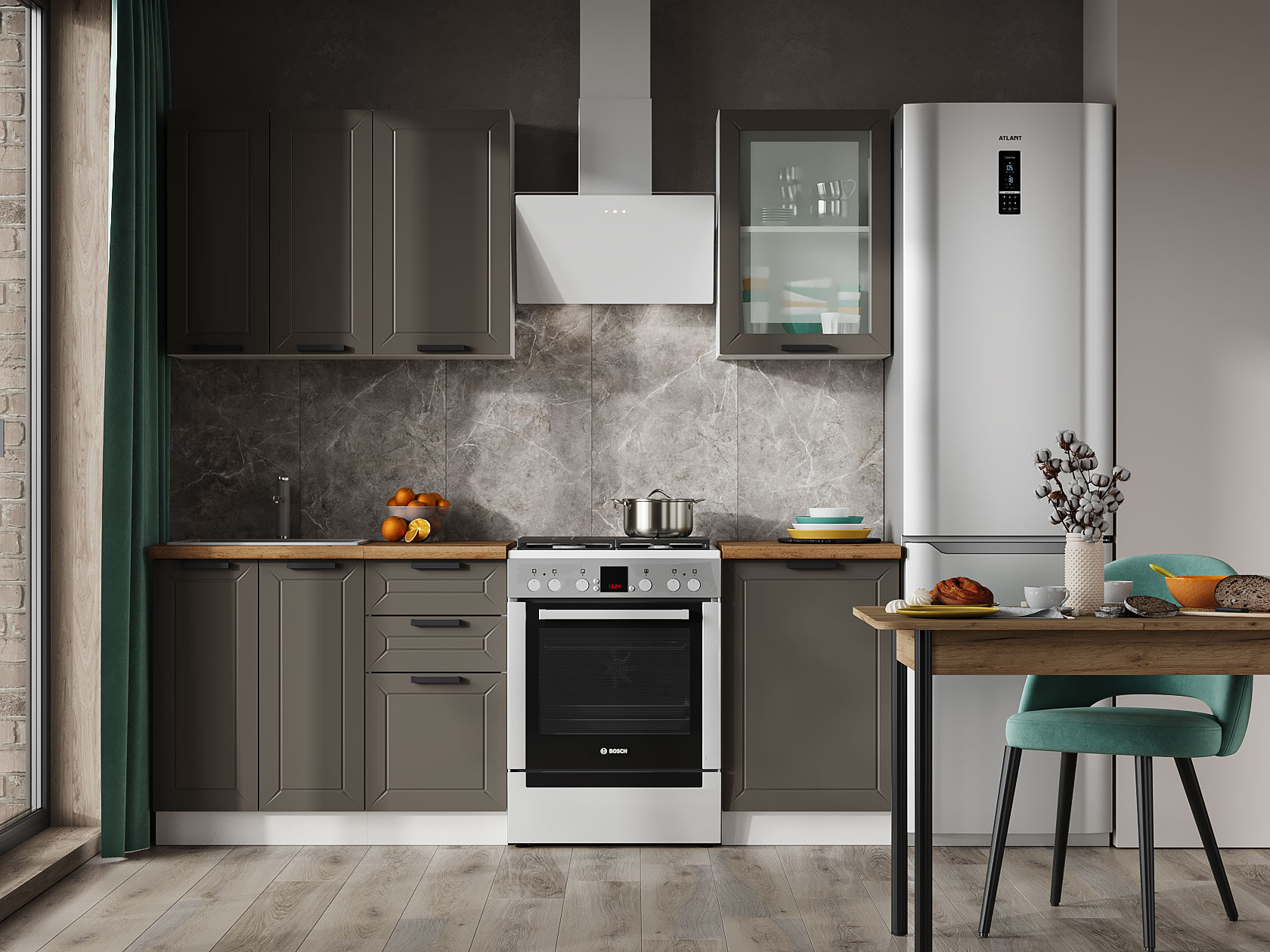 Кухонный гарнитур Оптима 150 см Белый / Холст вулкан / Стекло