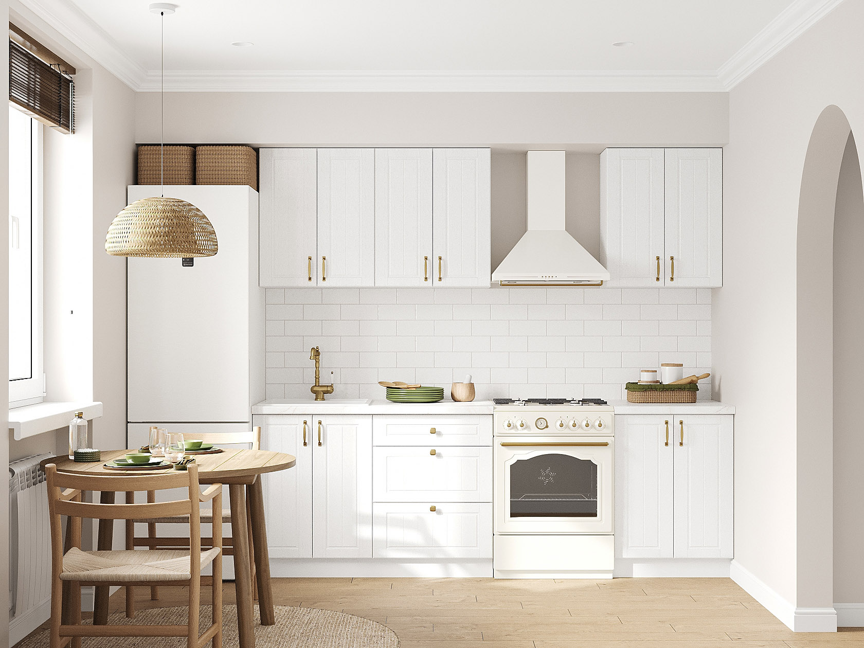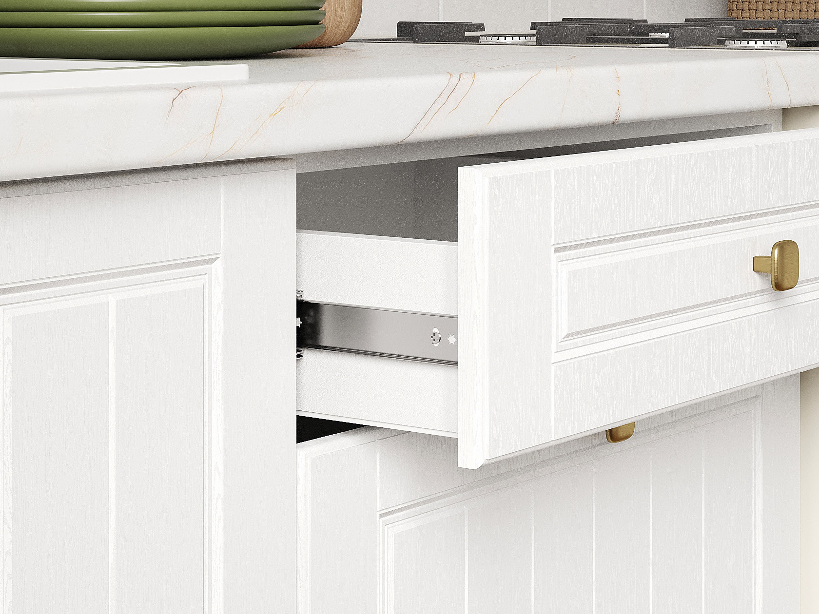 Кухонный гарнитур Прованс 180 см Белый / Белый текстурный