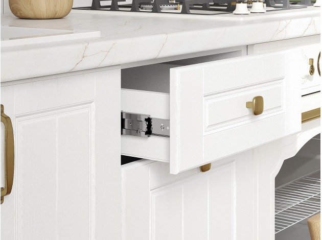 - Направляющие ящиков: шариковые.