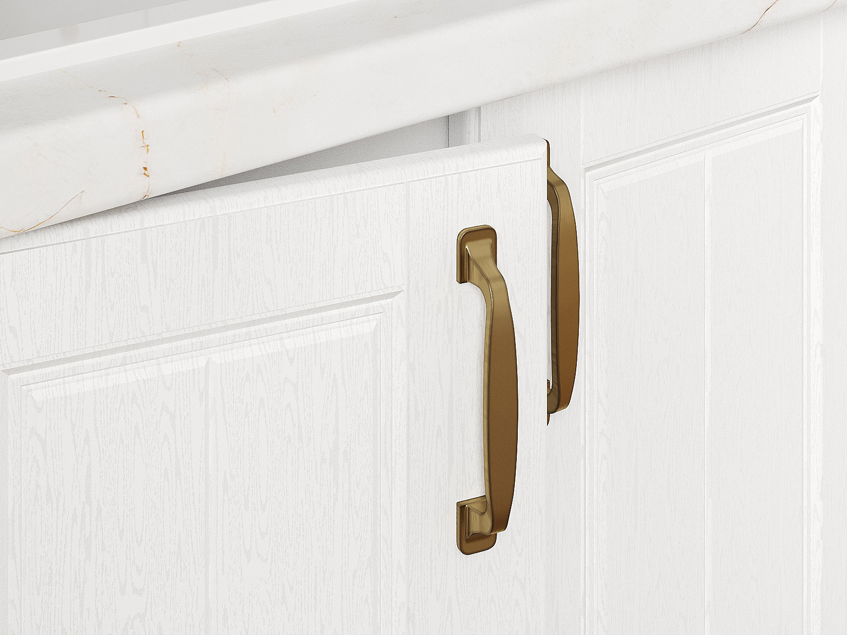 Фасады с внутренней стороны имеют базовые несквозные отверстия под ручки 12,8 см, при желании, можно установить ручки другого размера, просверлив отверстия на фасаде по месту.