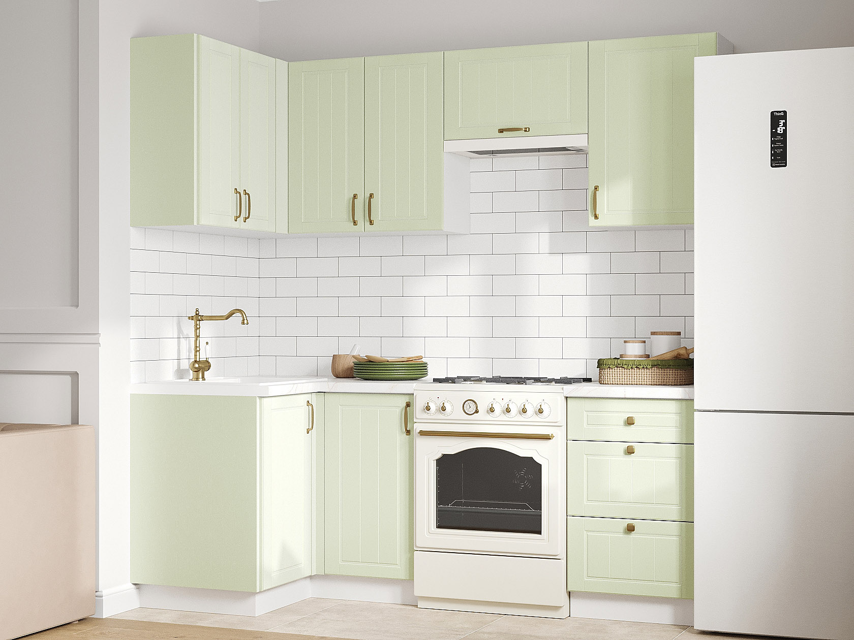 Кухонный гарнитур Прованс 210х100 см Белый / Фисташковый структурный