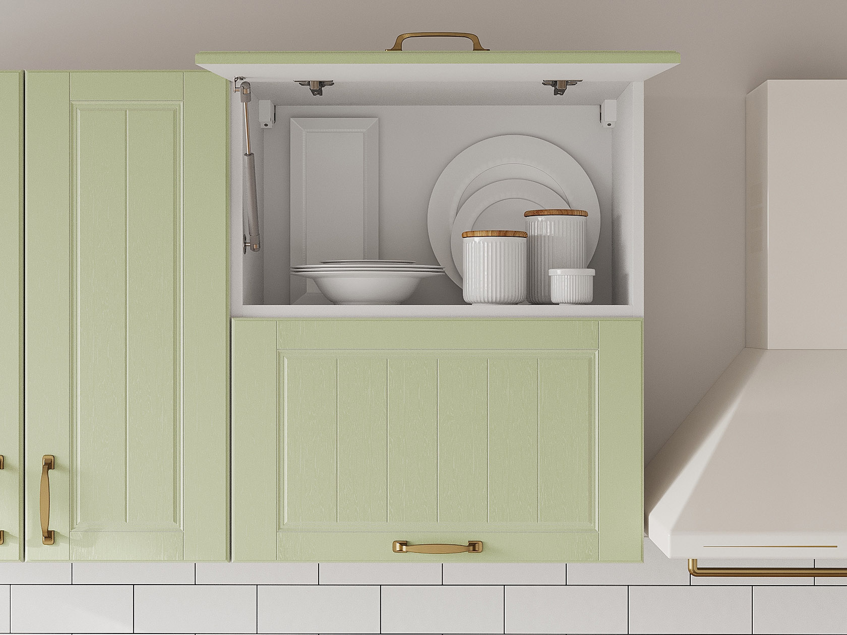 - Фурнитура дверок: накладные петли с доводчиком, подъемник с газовым кронштейном.