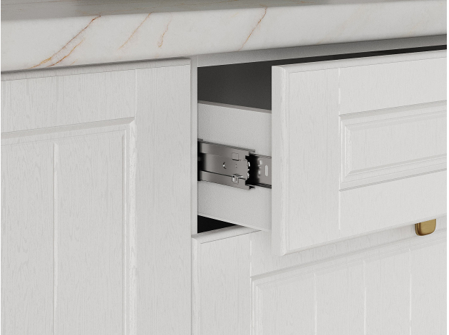 Фасады с внутренней стороны имеют базовые несквозные отверстия под ручки 12,8 см, при желании, можно установить ручки другого размера, просверлив отверстия на фасаде по месту.