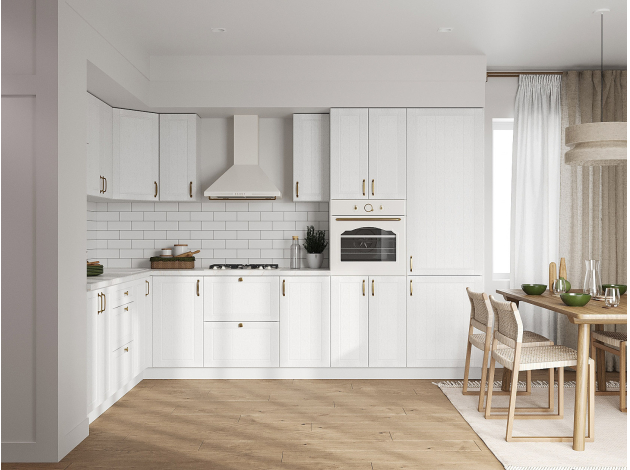 Кухонный гарнитур Прованс 320х220 см — вместительный, современный и практичный набор для организации порядка. Угловая конструкция и расположение элементов позволяют грамотно использовать пространство и создать комфортные условия для приготовления пищи. Матовые фасады легко очищаются от загрязнений, что делает уход за мебелью простым и необременительным.