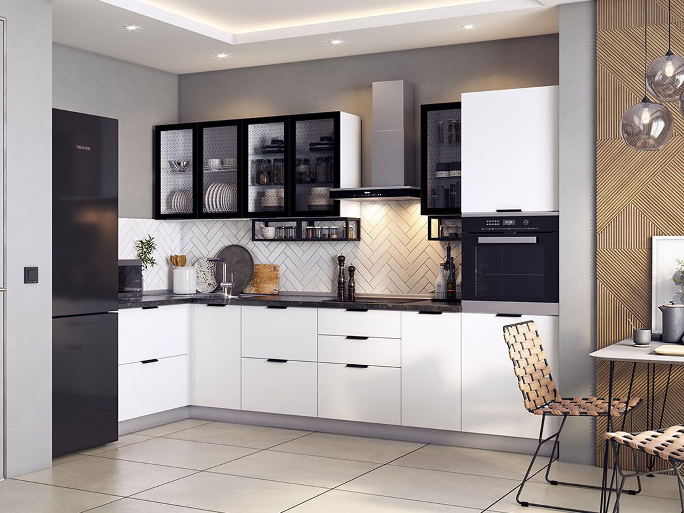 - Фурнитура ящиков: метабокс на основе роликовых направляющих.