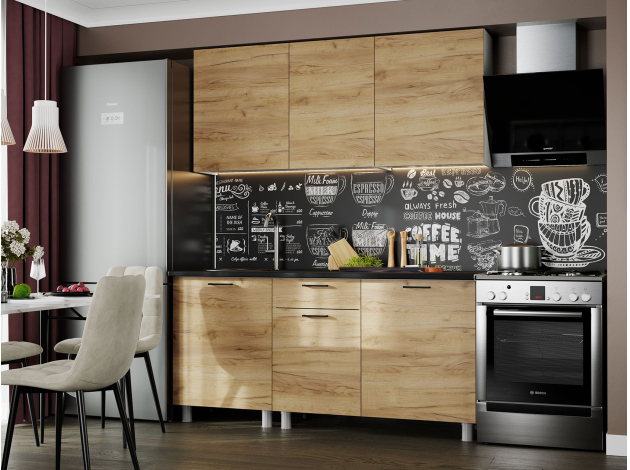 Обратите внимание, стеновая панель, плинтус, мойка и сушилка для посуды в комплект не входят.