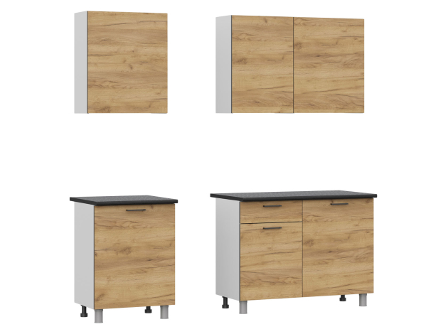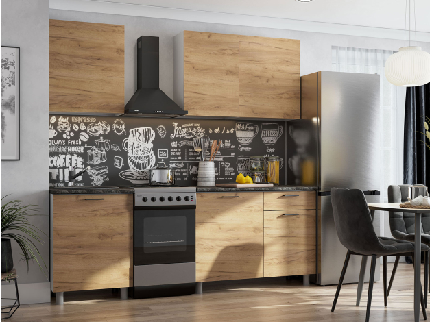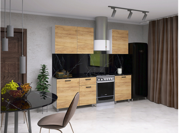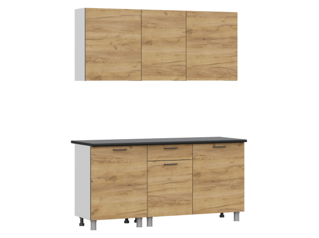Кухонный гарнитур Страйк 170 см — простой способ оформить пространство для приготовления пищи и хранения утвари на небольшой площади. Ухаживать за фасадами нетрудно: гладкая поверхность не портится от влаги и легко чистится от загрязнений. В дизайне нет нарочитых деталей, поэтому мебель подходит для самых разных интерьеров.