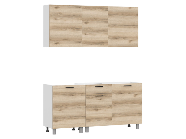 Кухонный гарнитур Страйк 170 см — простой способ оформить пространство для приготовления пищи и хранения утвари на небольшой площади. Ухаживать за фасадами нетрудно: гладкая поверхность не портится от влаги и легко чистится от загрязнений. В дизайне нет нарочитых деталей, поэтому мебель подходит для самых разных интерьеров.