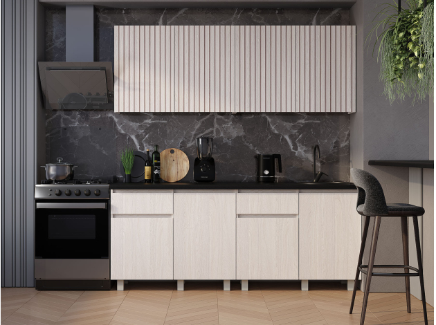 Кухонный гарнитур Тренд воплощает современный подход к эстетике и функциональности мебельного дизайна. Компактное решение станет удачным приобретением для небольшой студии или дачи. В ящиках и на полках найдется место для столовых приборов, посуды и других принадлежностей, которые требуются чаще всего.