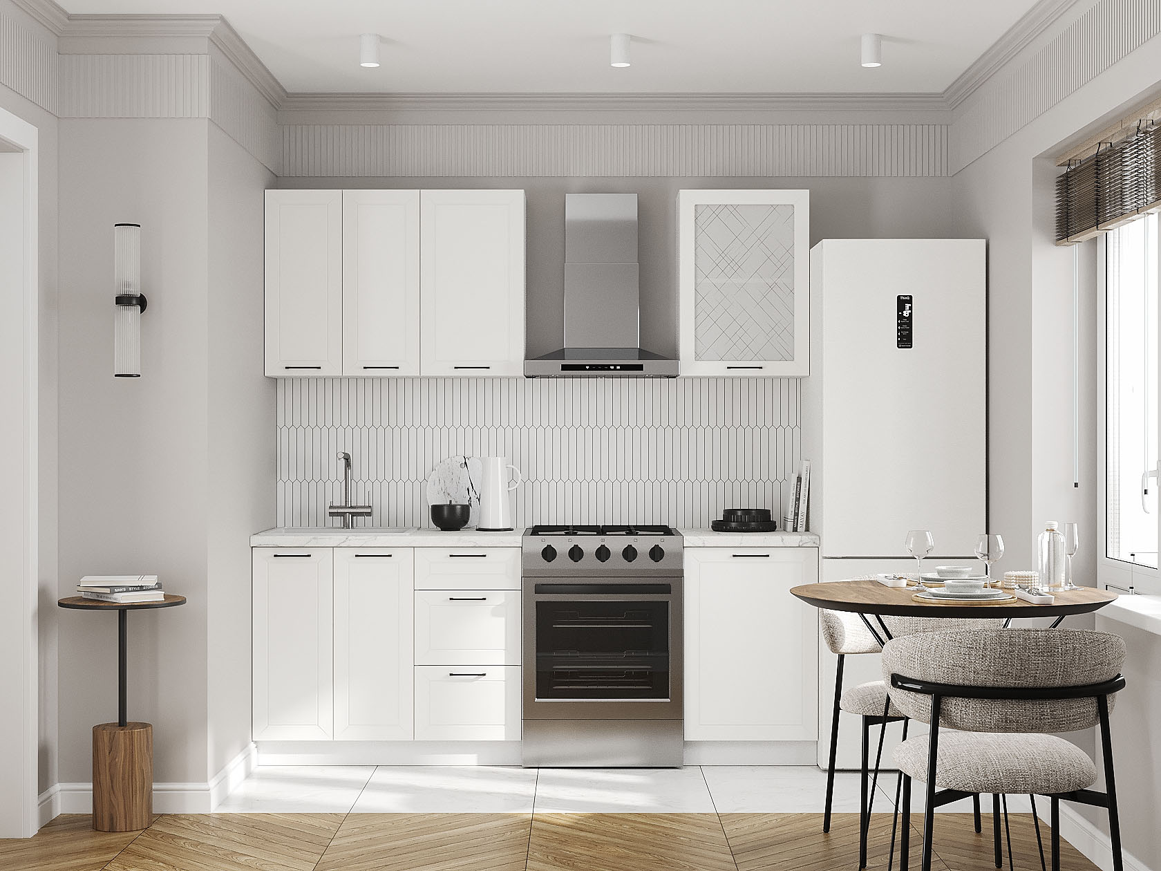 Кухонный гарнитур Вектор 150 см со стеклом Белый / Бланж / Стекло