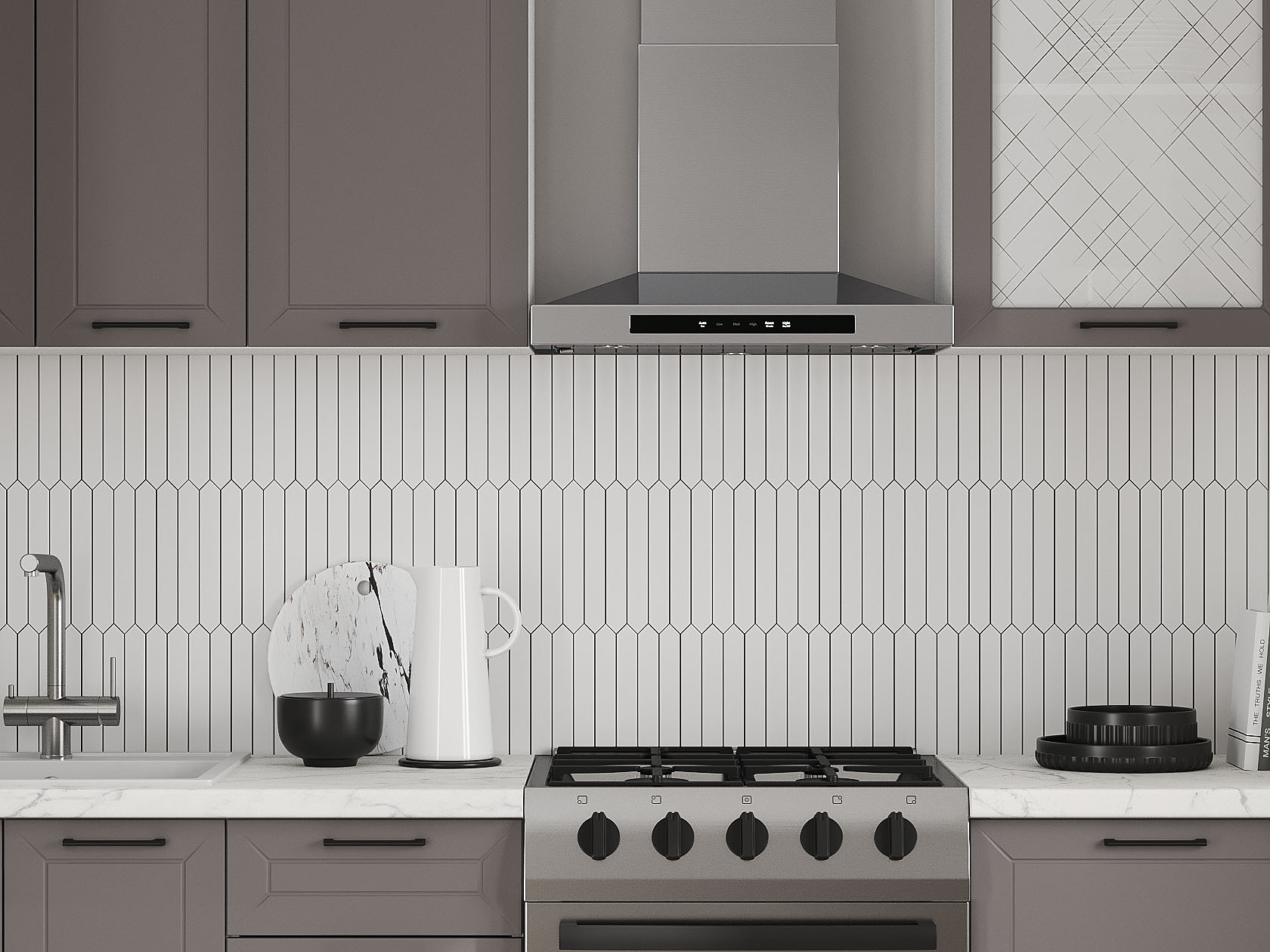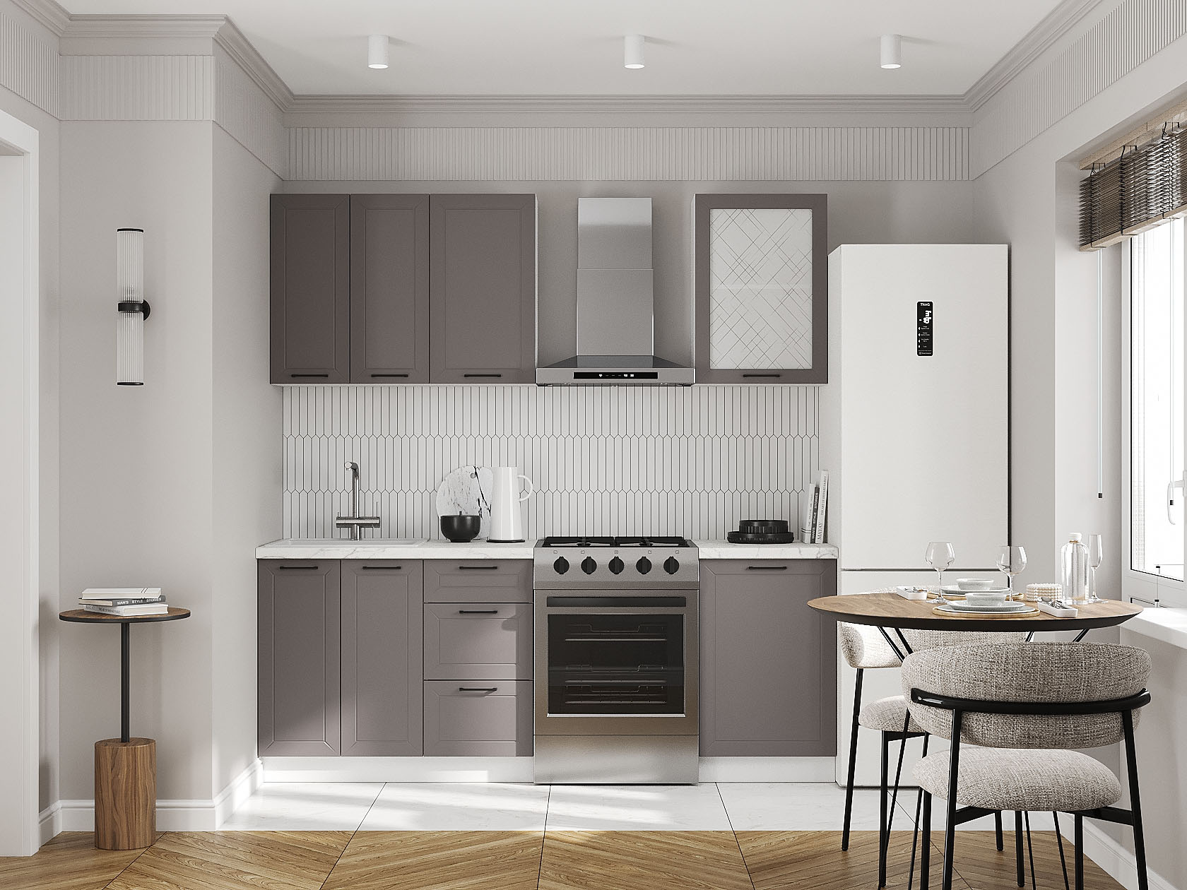 Кухонный гарнитур Вектор 150 см со стеклом Белый / Грей / Стекло