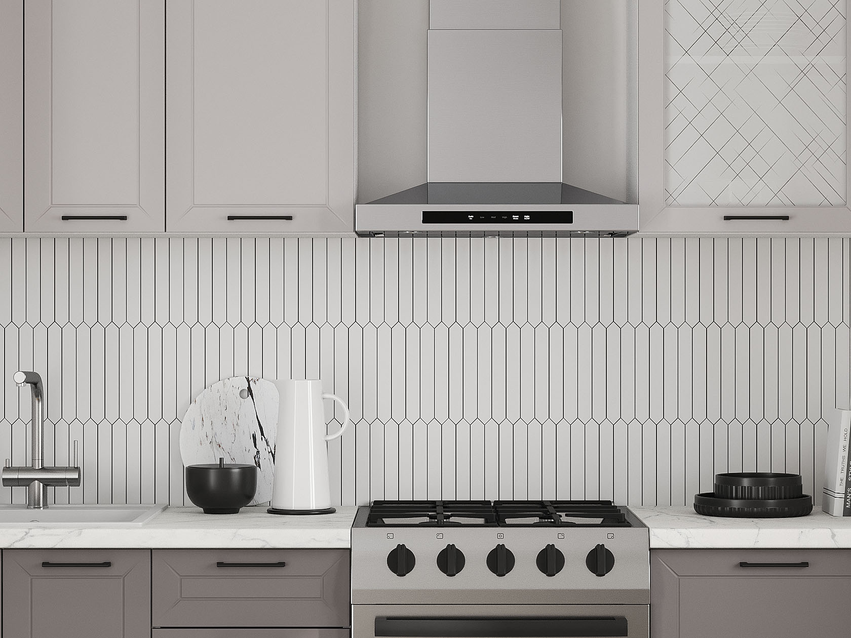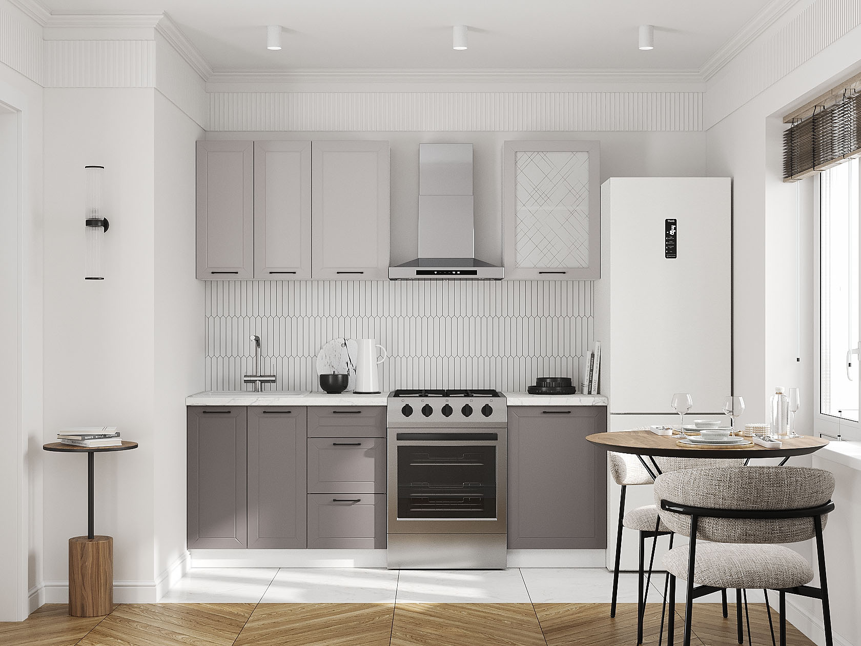 Кухонный гарнитур Вектор 150 см со стеклом Белый / Грей / Нео / Стекло