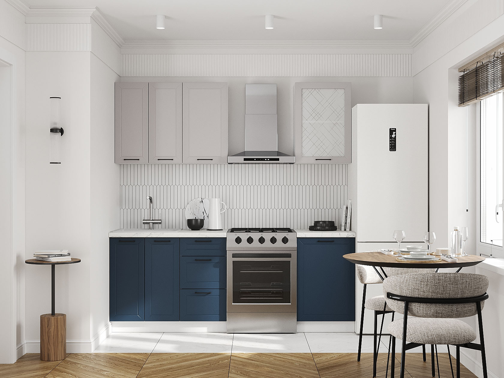 Кухонный гарнитур Вектор 150 см со стеклом Белый / Океания / Нео / Стекло