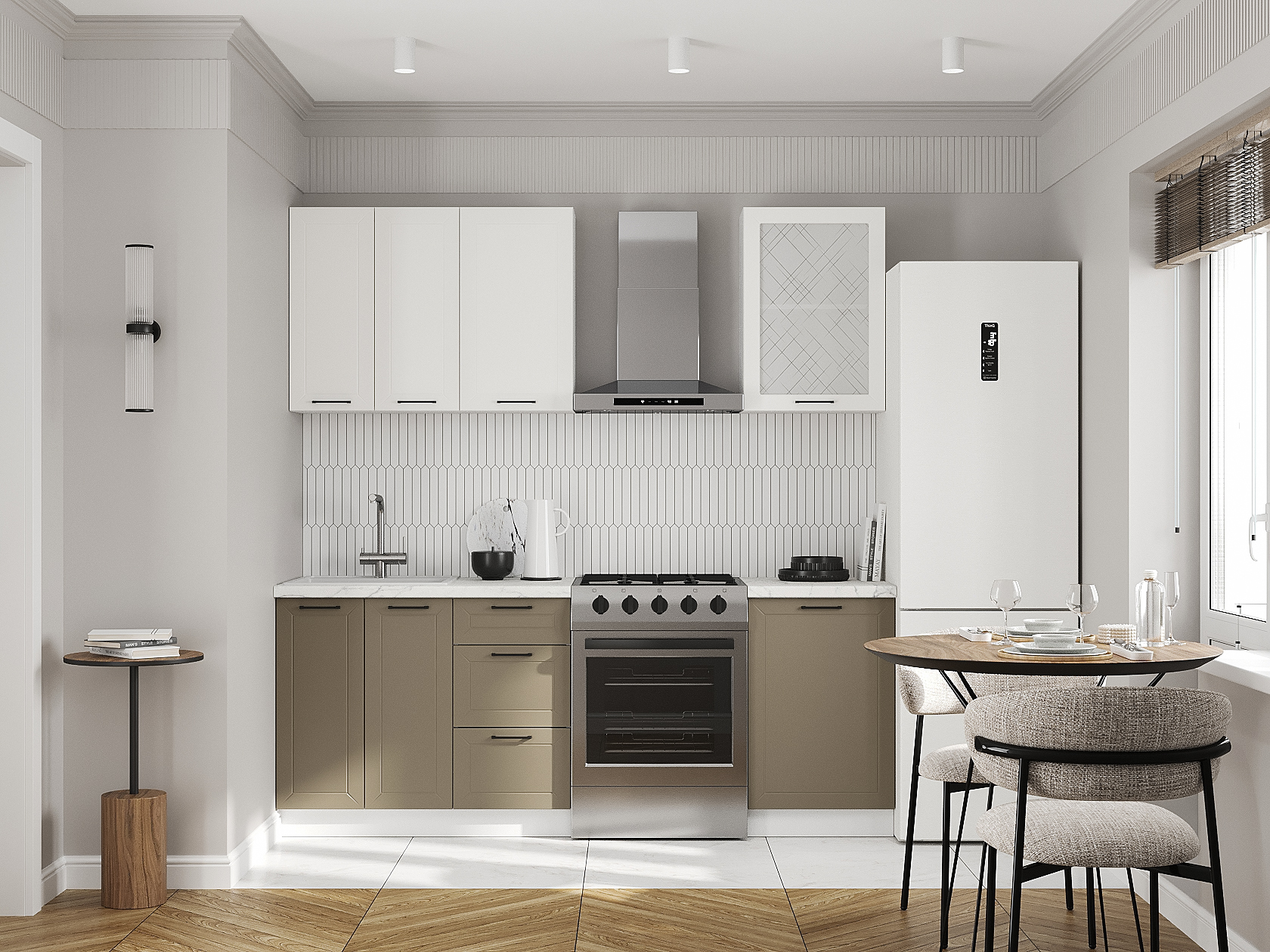 Кухонный гарнитур Вектор 150 см со стеклом Белый / Бланж / Базальт / Стекло
