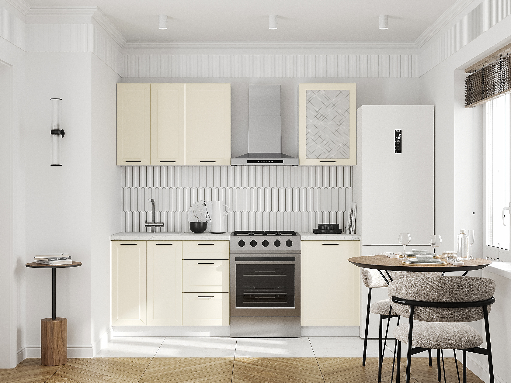 Кухонный гарнитур Вектор 150 см со стеклом Белый / Магнолия / Стекло