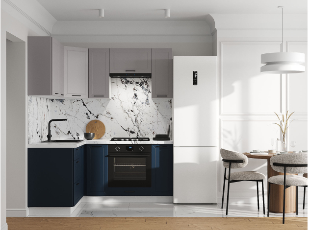 Кухонный гарнитур Вектор 180х150 см поможет организовать удобное хранение продуктов, аксессуаров и различной посуды. Угловая конструкция экономит пространство и позволяет адаптировать набор для небольшой квартиры. Здесь очень приятно и комфортно готовить, потому что всё необходимое находится под рукой. Фасады декорированы фрезеровкой, которая придает мебели элегантный вид.