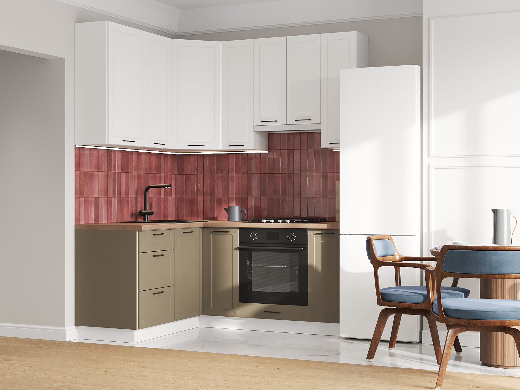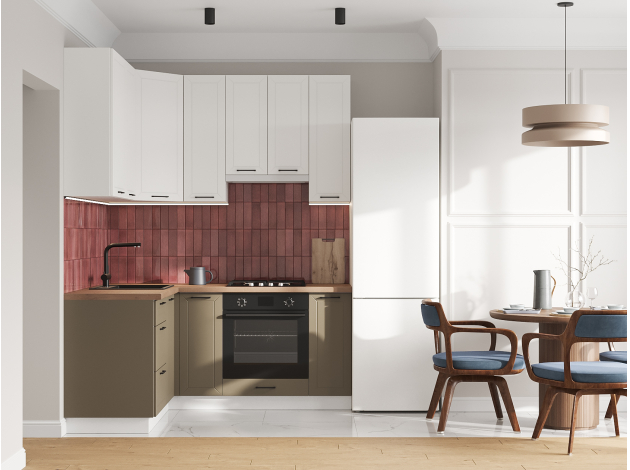 Высокий кухонный гарнитур Вектор 180х150 см Белый / Бланж / Базальт