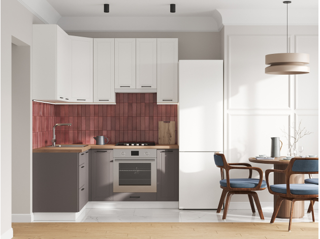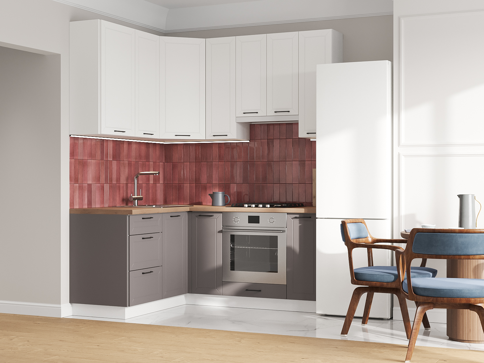 Высокий кухонный гарнитур Вектор 180х150 см Белый / Бланж / Грей