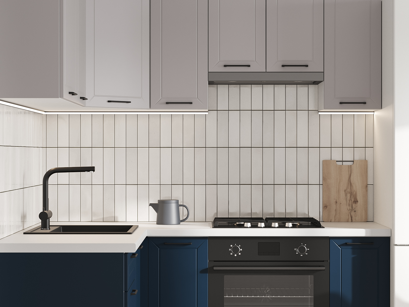 Высокий кухонный гарнитур Вектор 180х150 см Белый / Нео / Океания