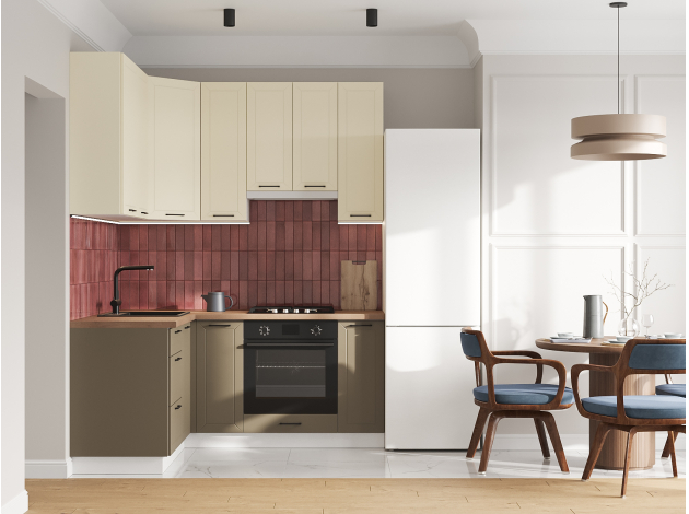 Высокий кухонный гарнитур Вектор 180х150 см Белый / Магнолия / Базальт