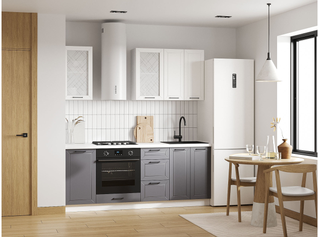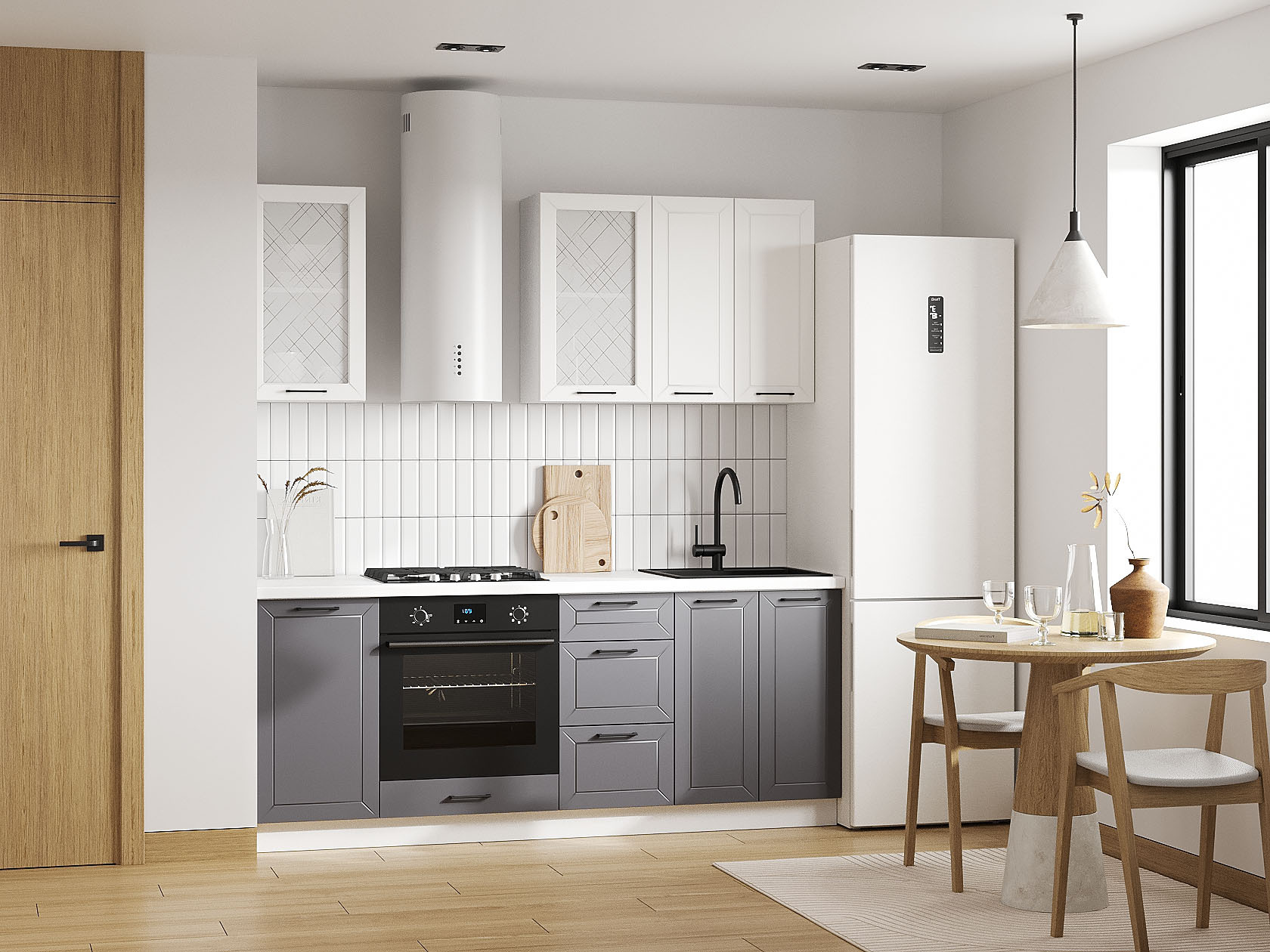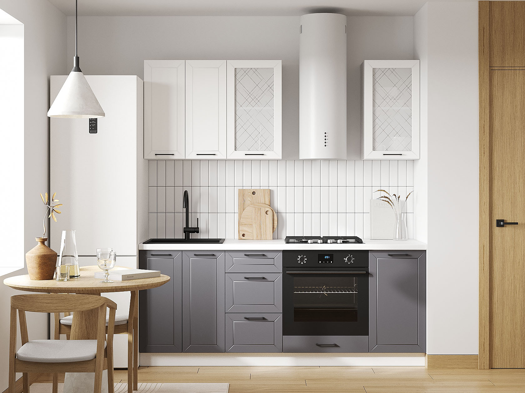 Кухонный гарнитур Вектор 200 см Белый / Графит / Бланж / Стекло