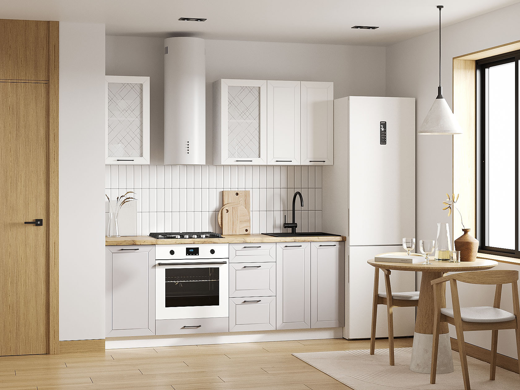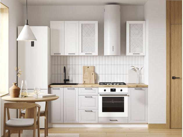 Кухонный гарнитур Вектор 200 см Белый / Нео / Бланж / Стекло