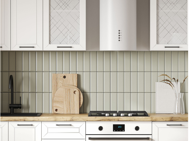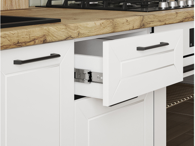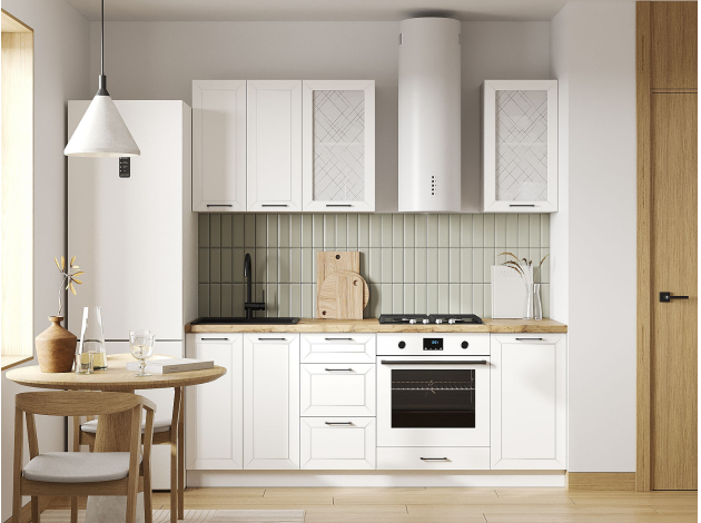 Кухонный гарнитур Вектор 200 см Белый / Бланж / Стекло