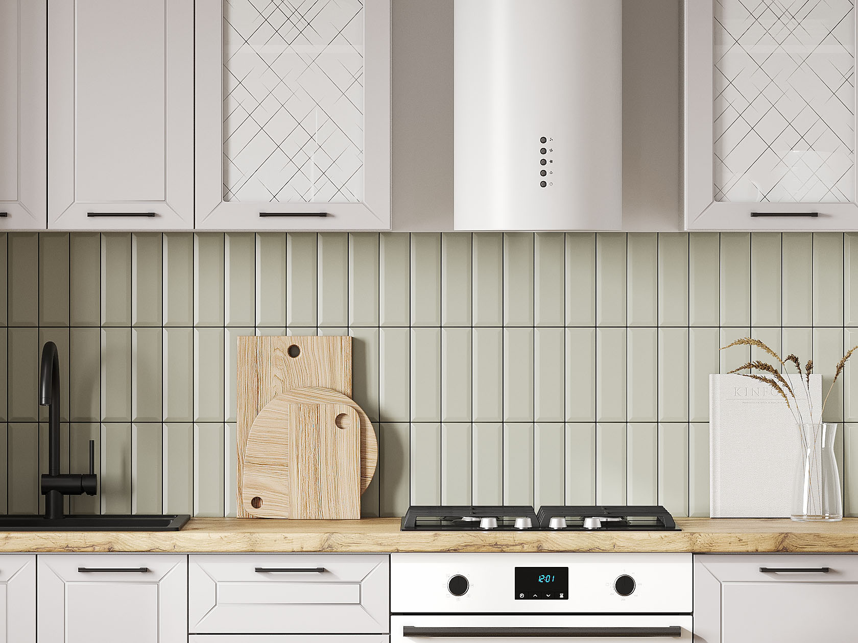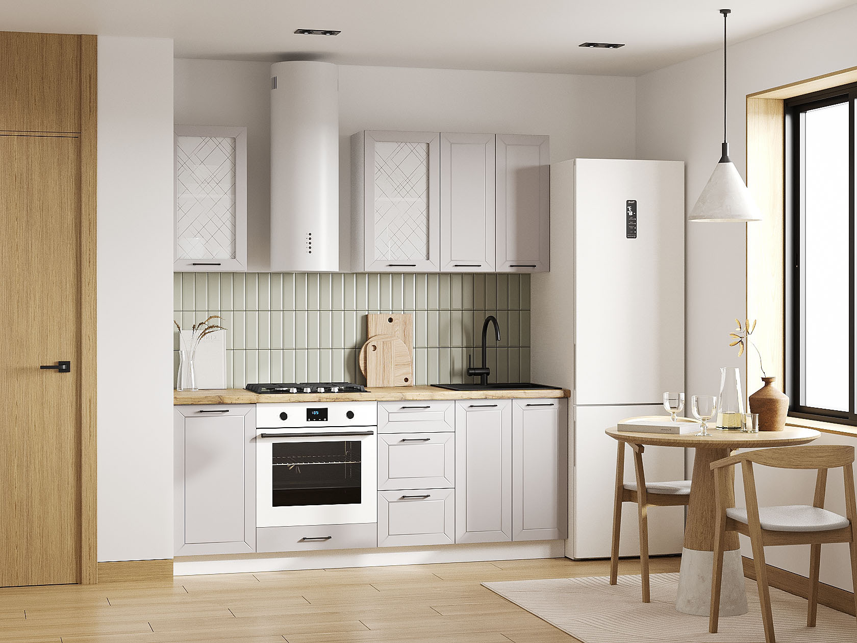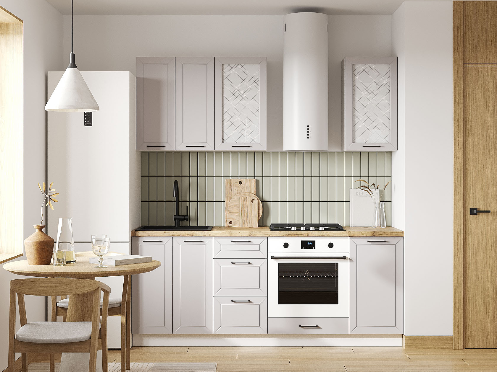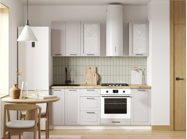 Кухонный гарнитур Вектор 200 см Белый / Нео / Стекло