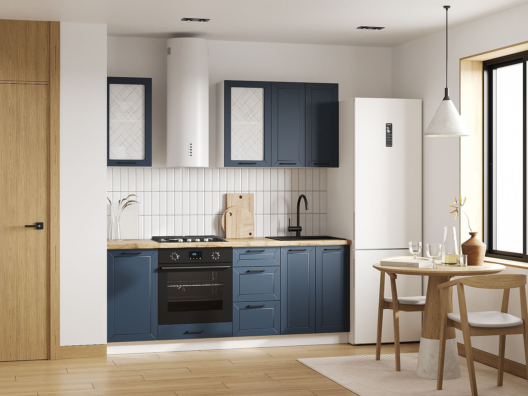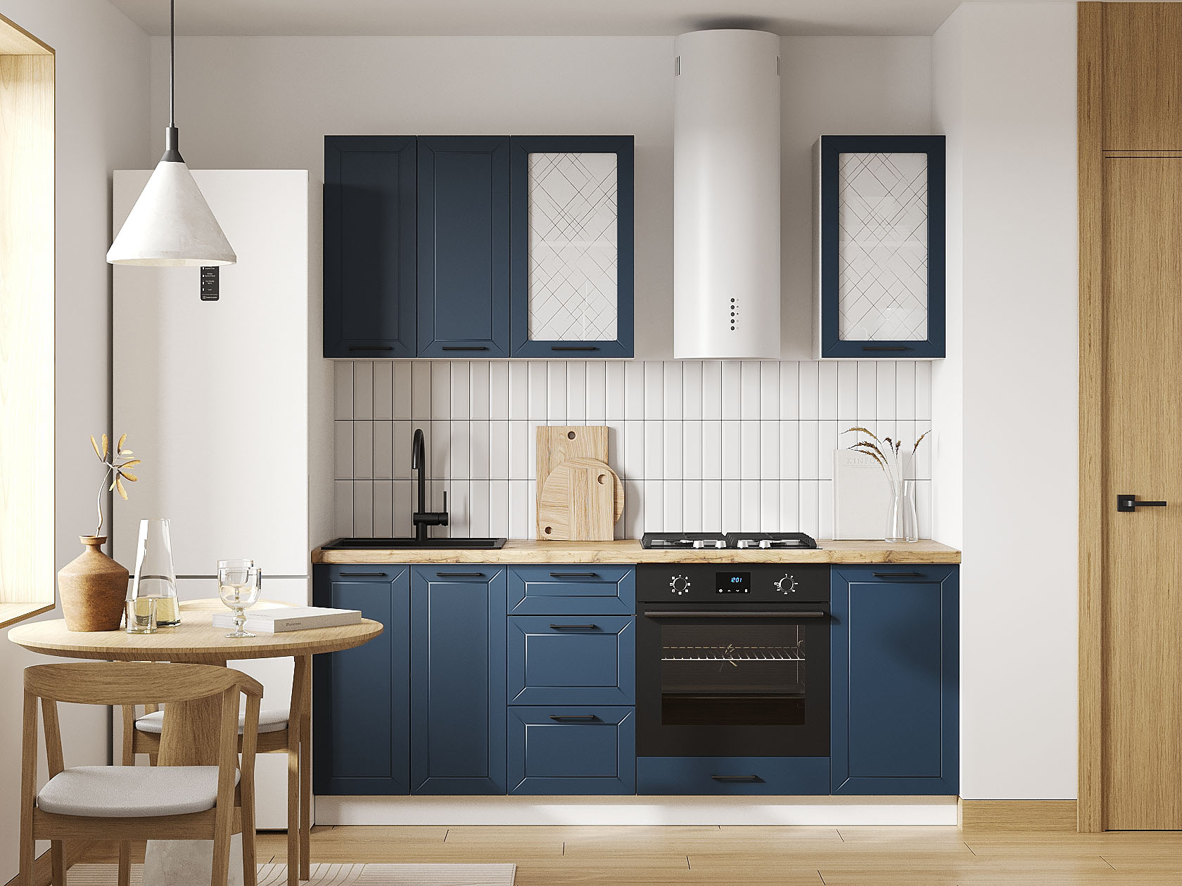 Кухонный гарнитур Вектор 200 см Белый / Океания / Стекло