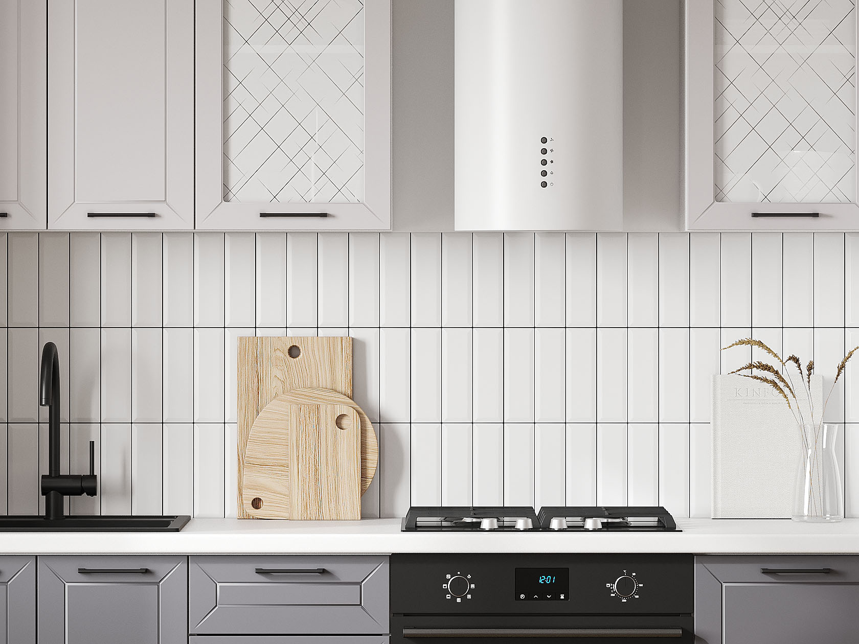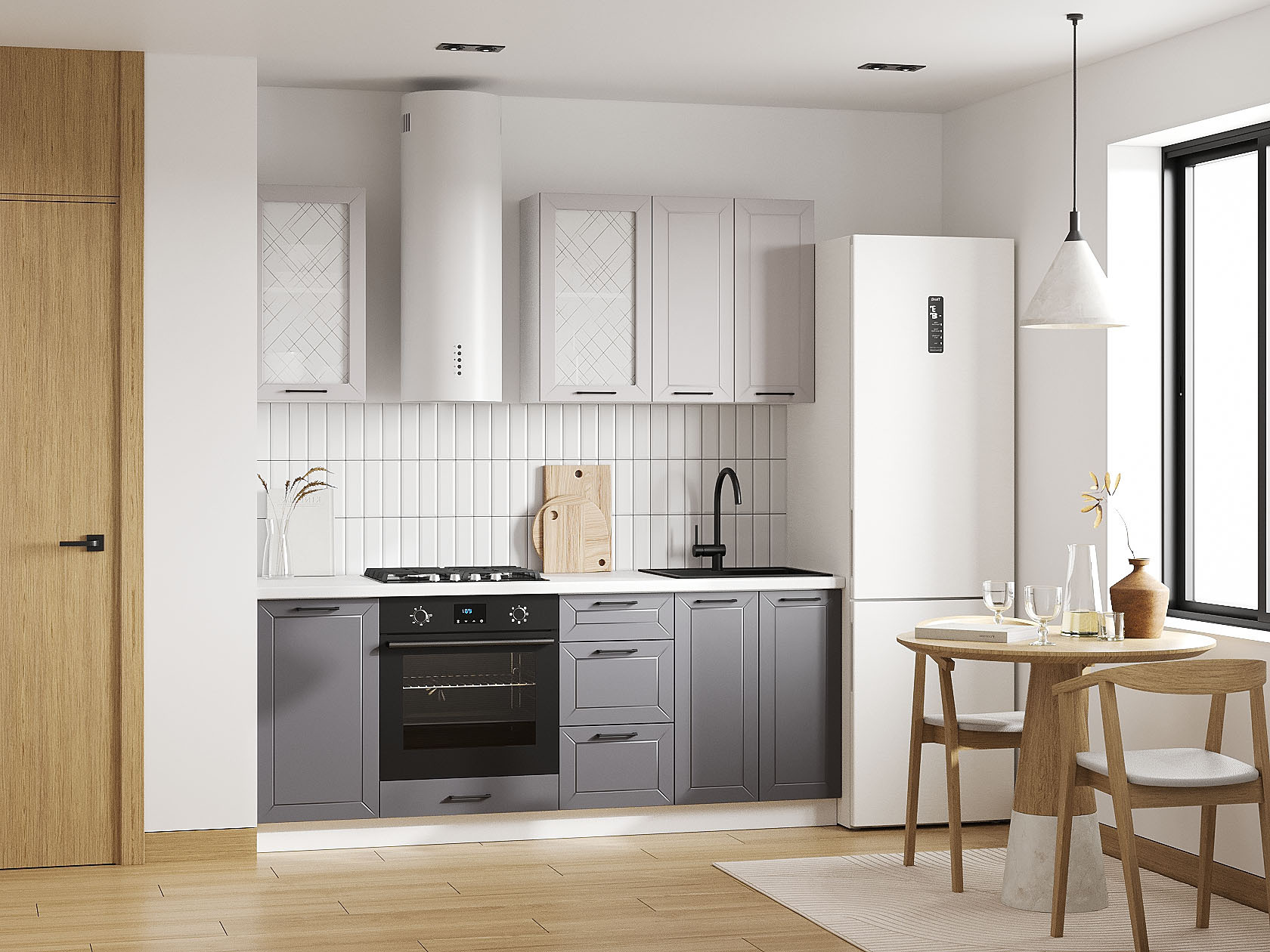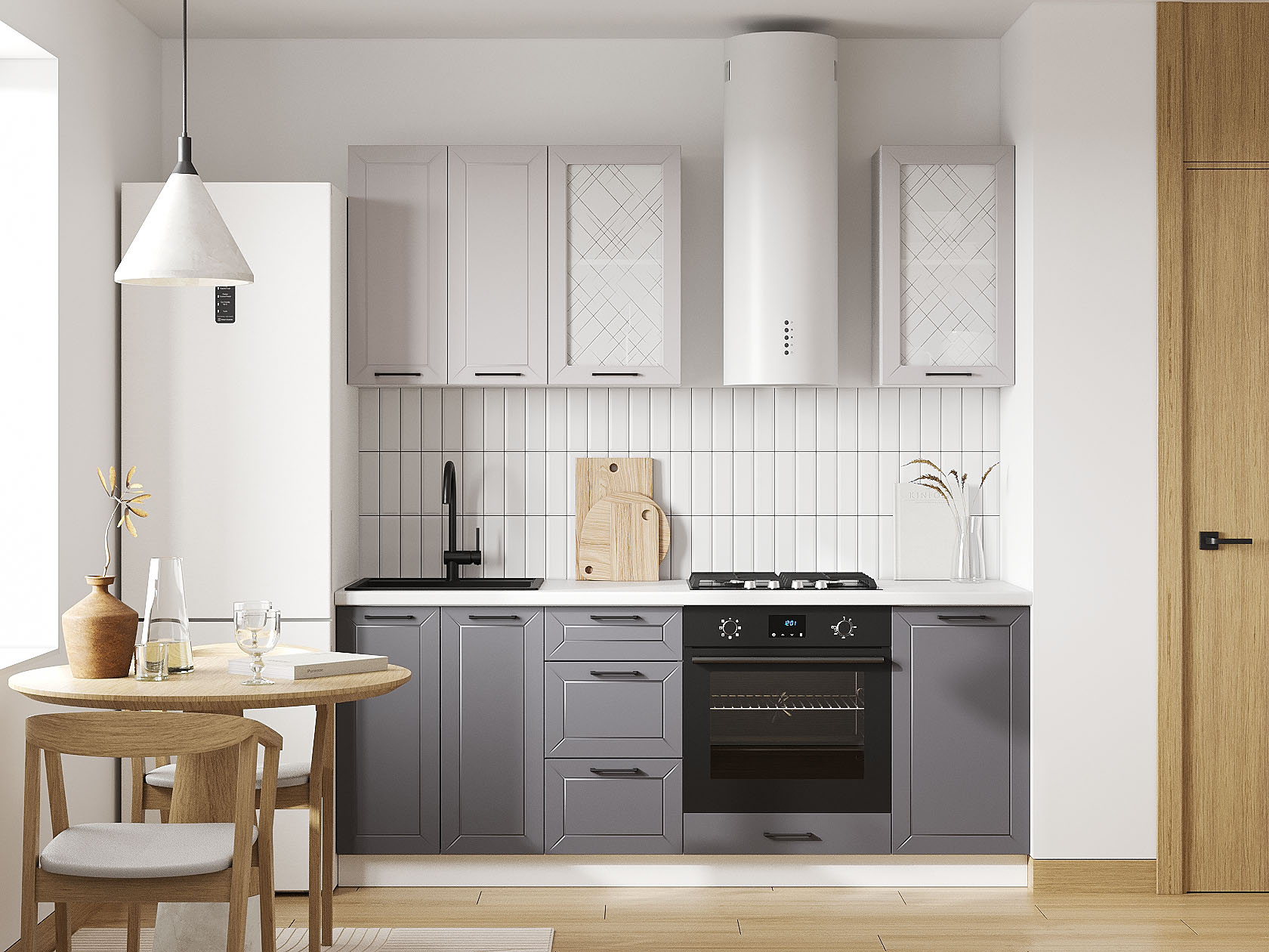 Кухонный гарнитур Вектор 200 см Белый / Графит / Нео / Стекло