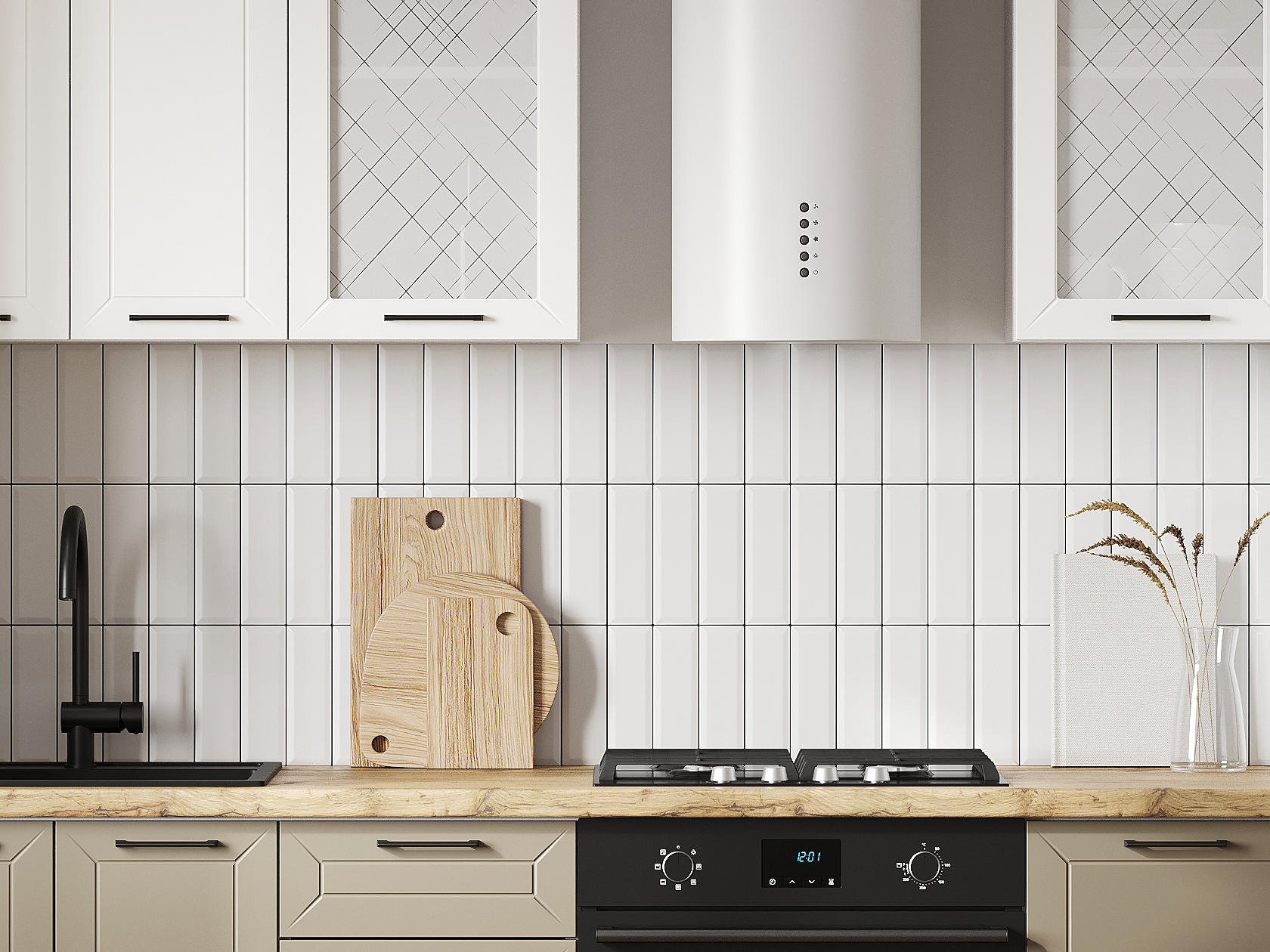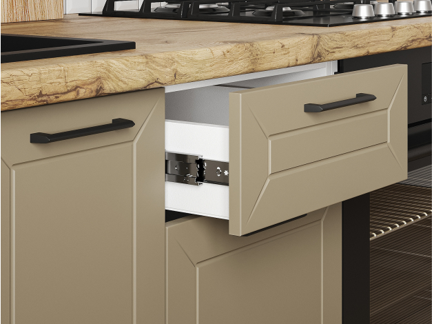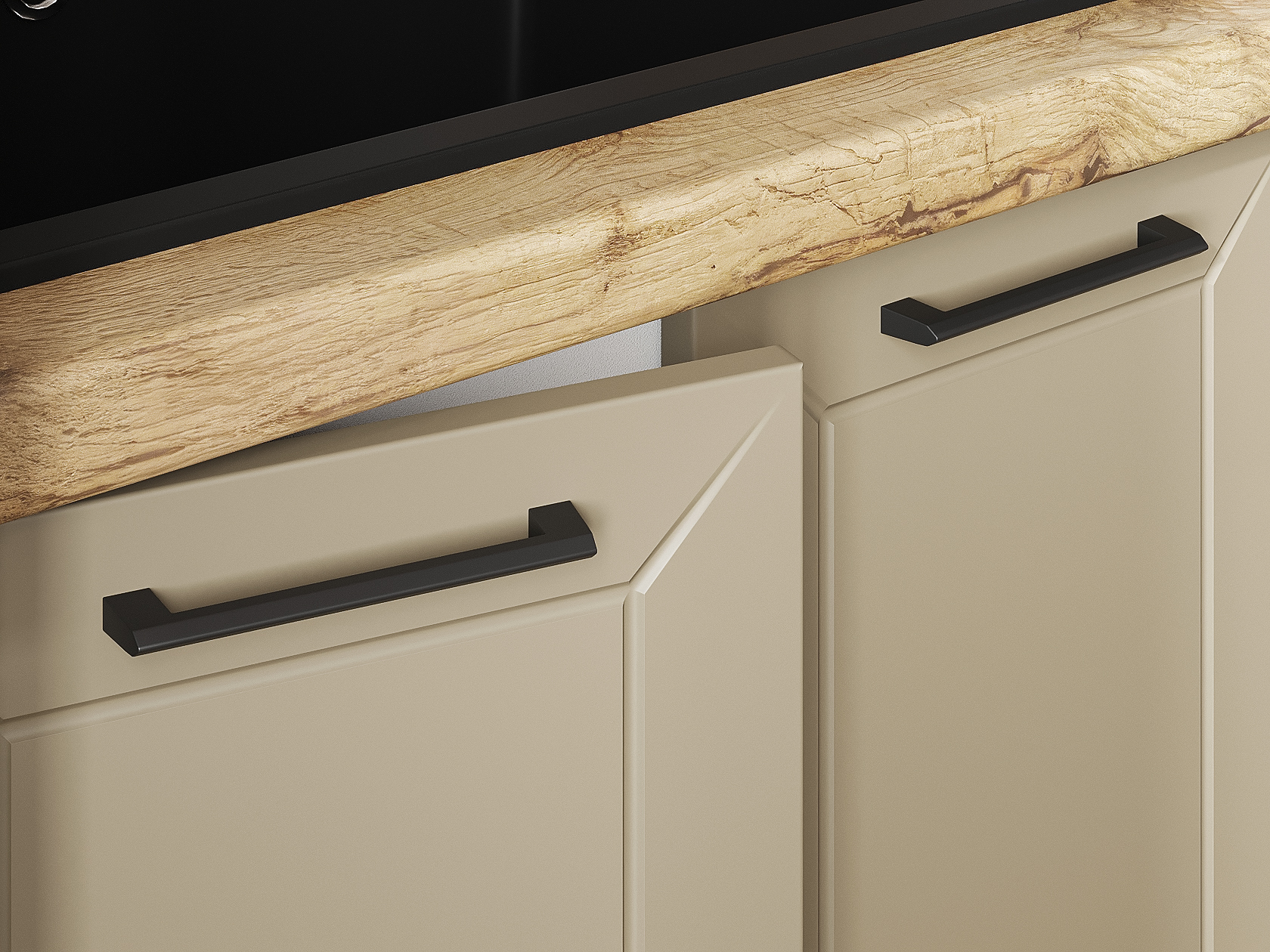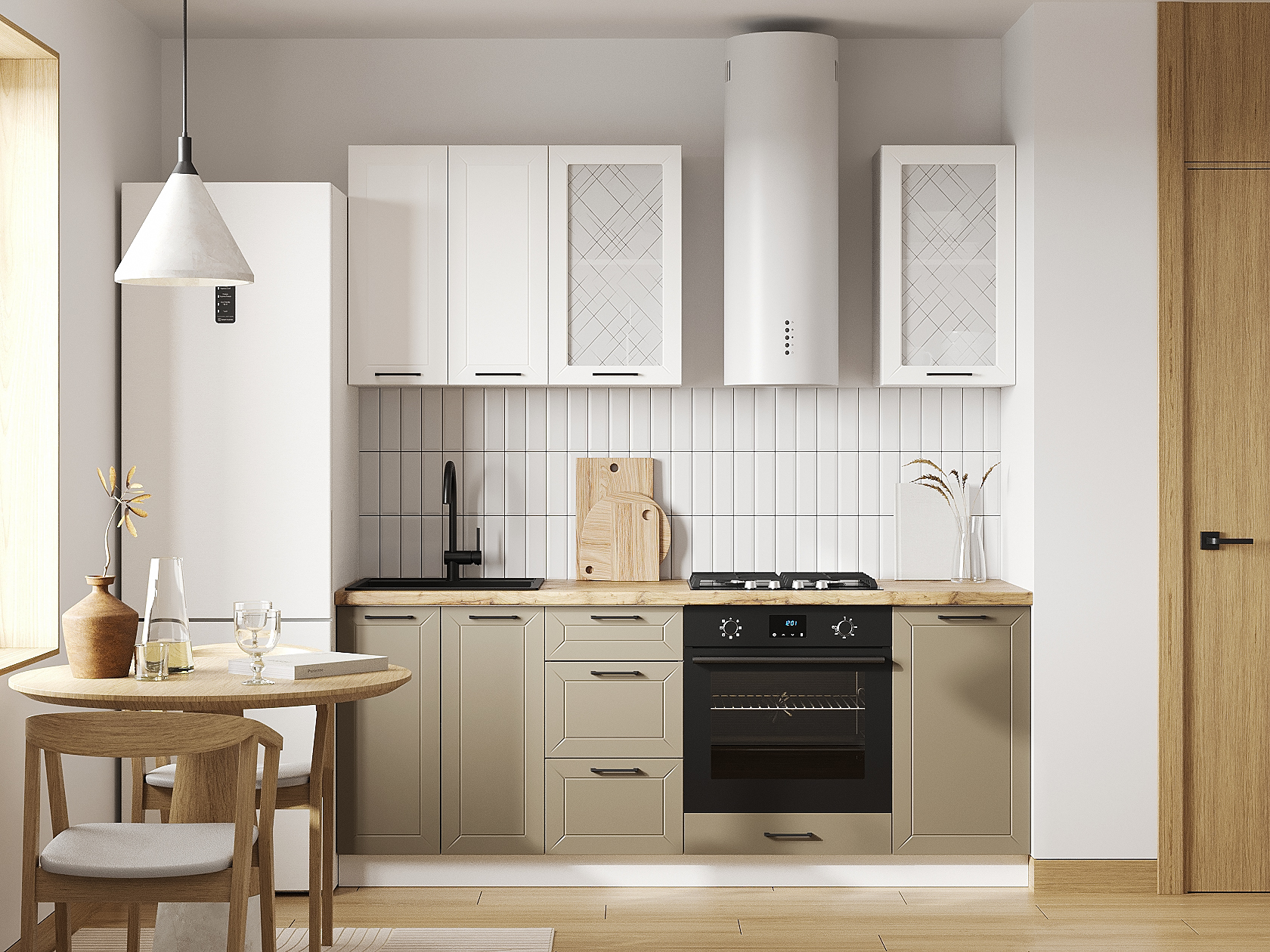Кухонный гарнитур Вектор 200 см Белый / Бланж / Базальт / Стекло