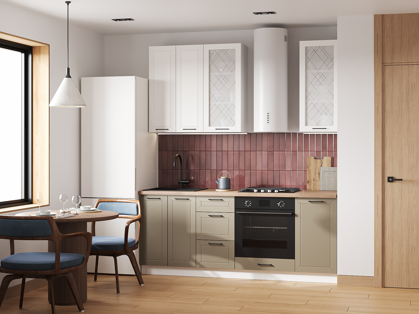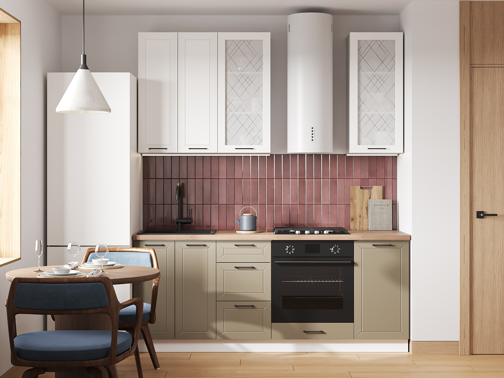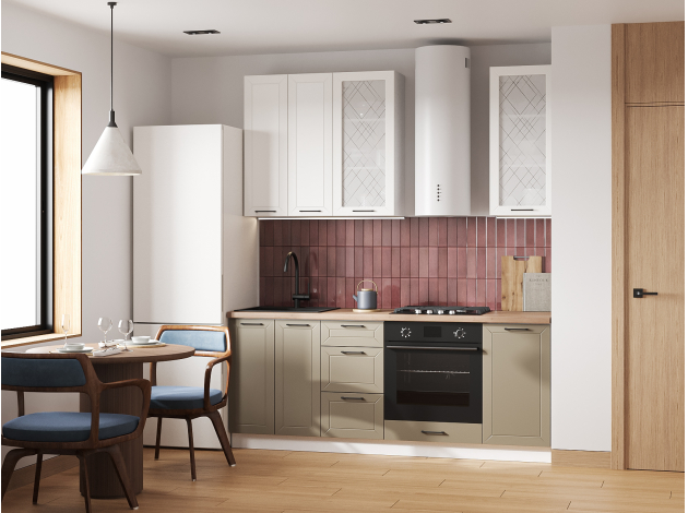 Высокий кухонный гарнитур со стеклом Вектор 200 см Белый / Бланж / Базальт / Стекло