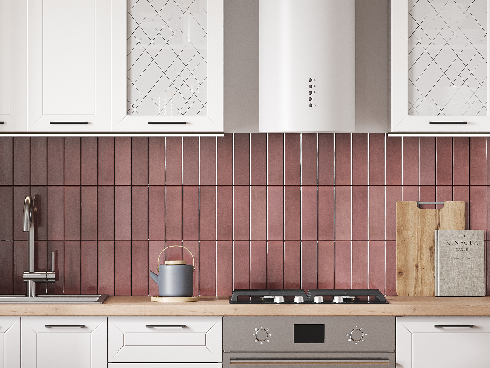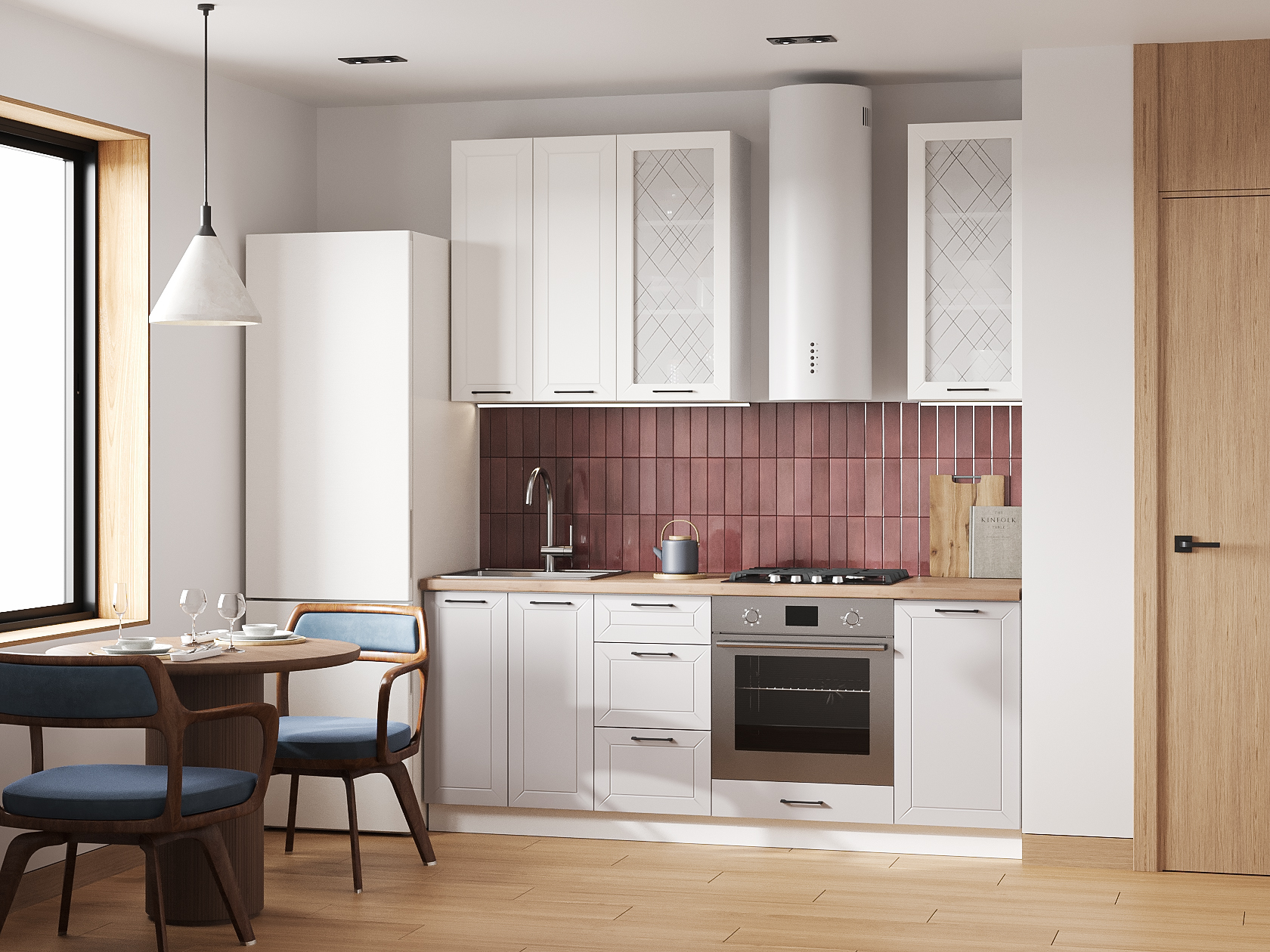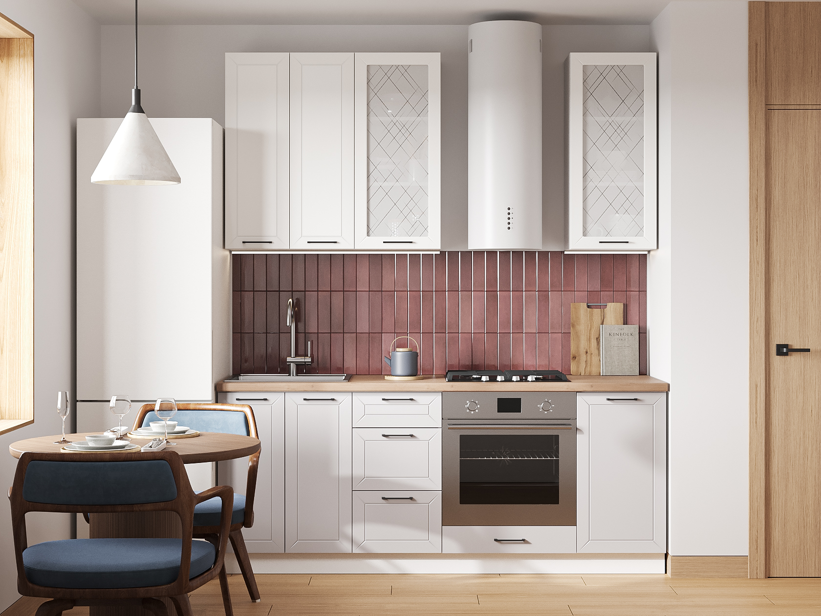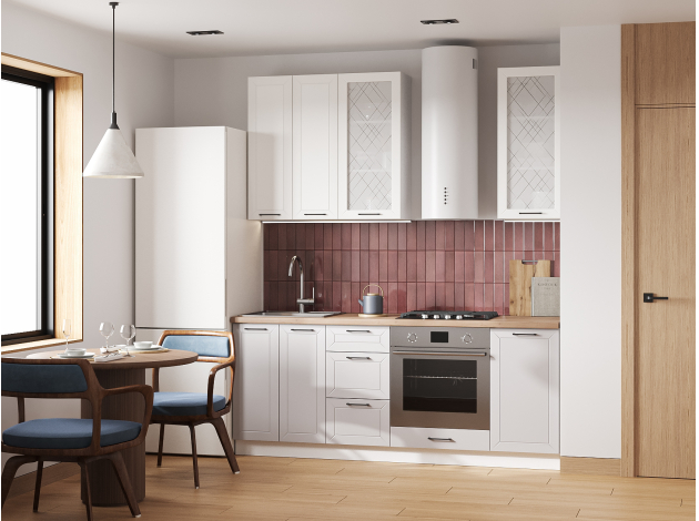 Высокий кухонный гарнитур со стеклом Вектор 200 см Белый / Бланж / Нео / Стекло