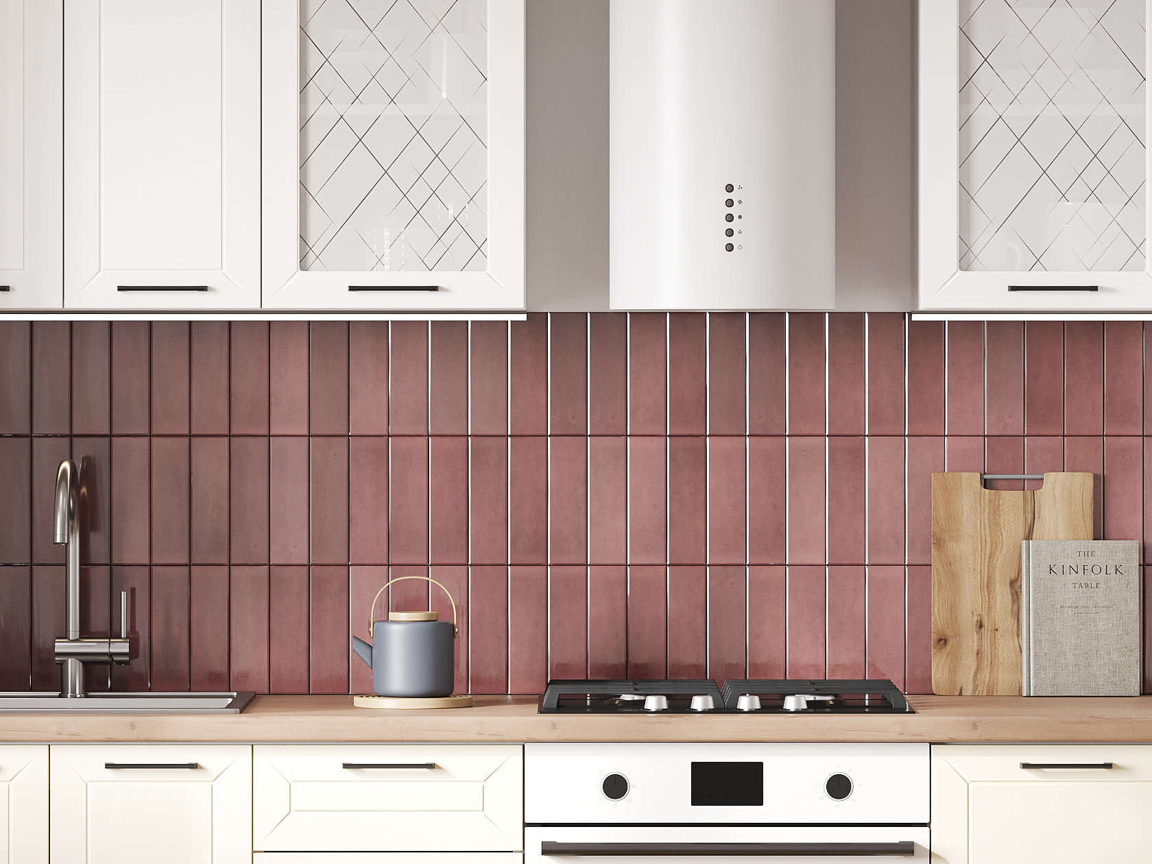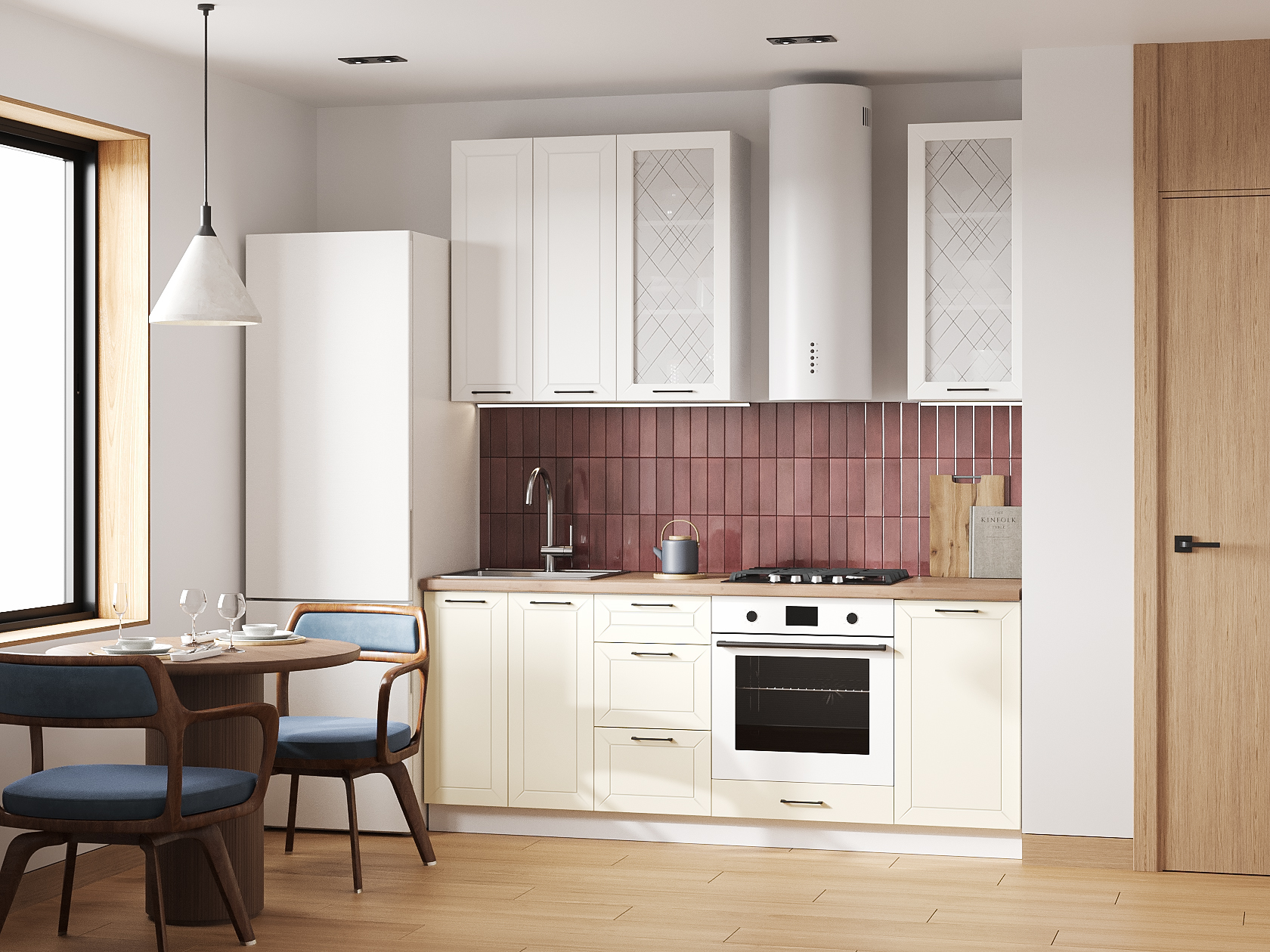 Высокий кухонный гарнитур со стеклом Вектор 200 см Белый / Магнолия / Стекло