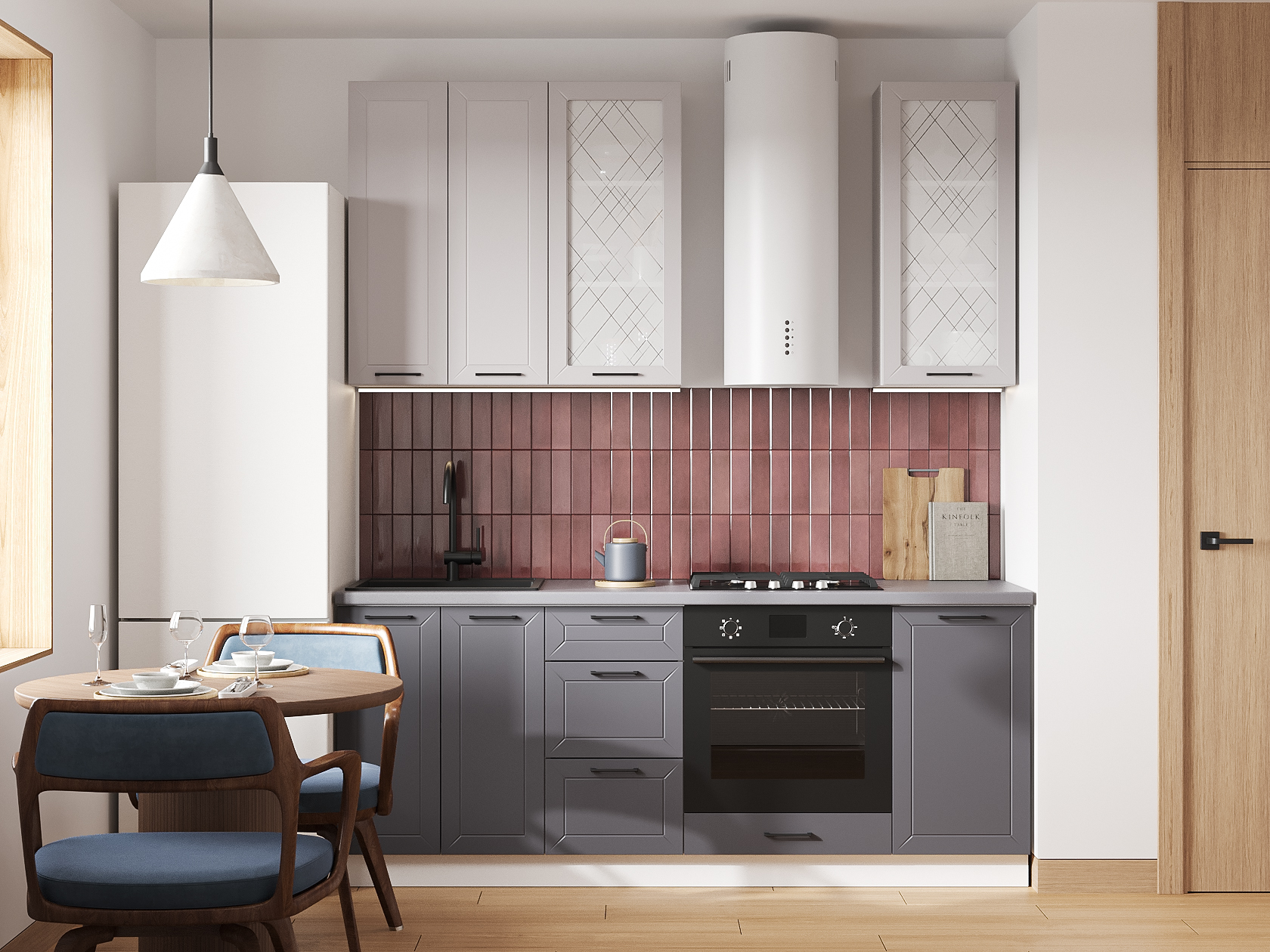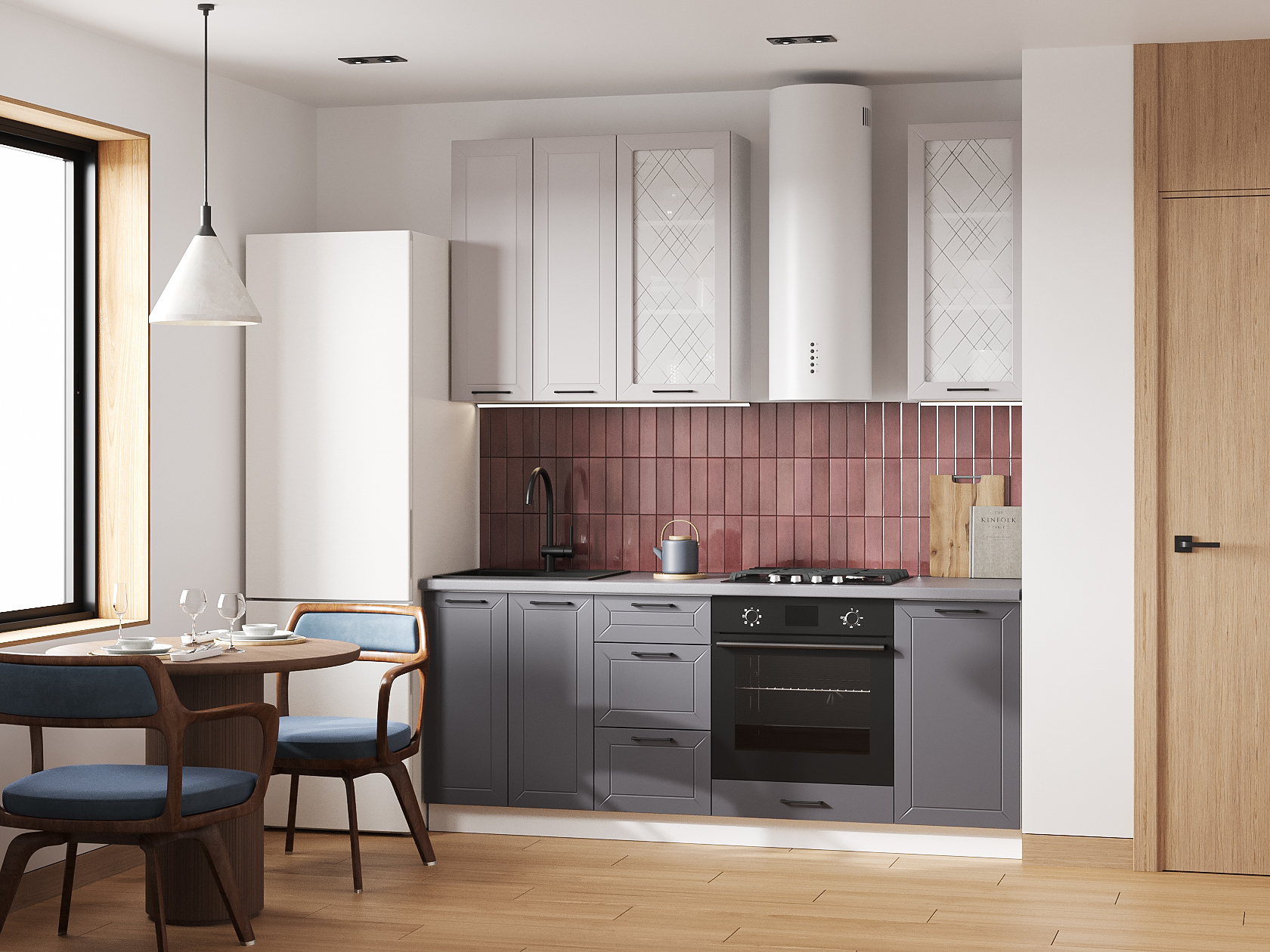 Высокий кухонный гарнитур со стеклом Вектор 200 см Белый / Нео / Графит / Стекло