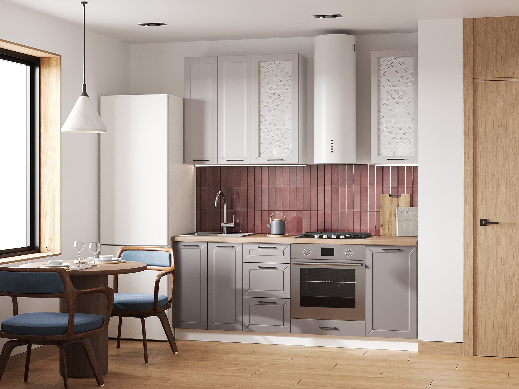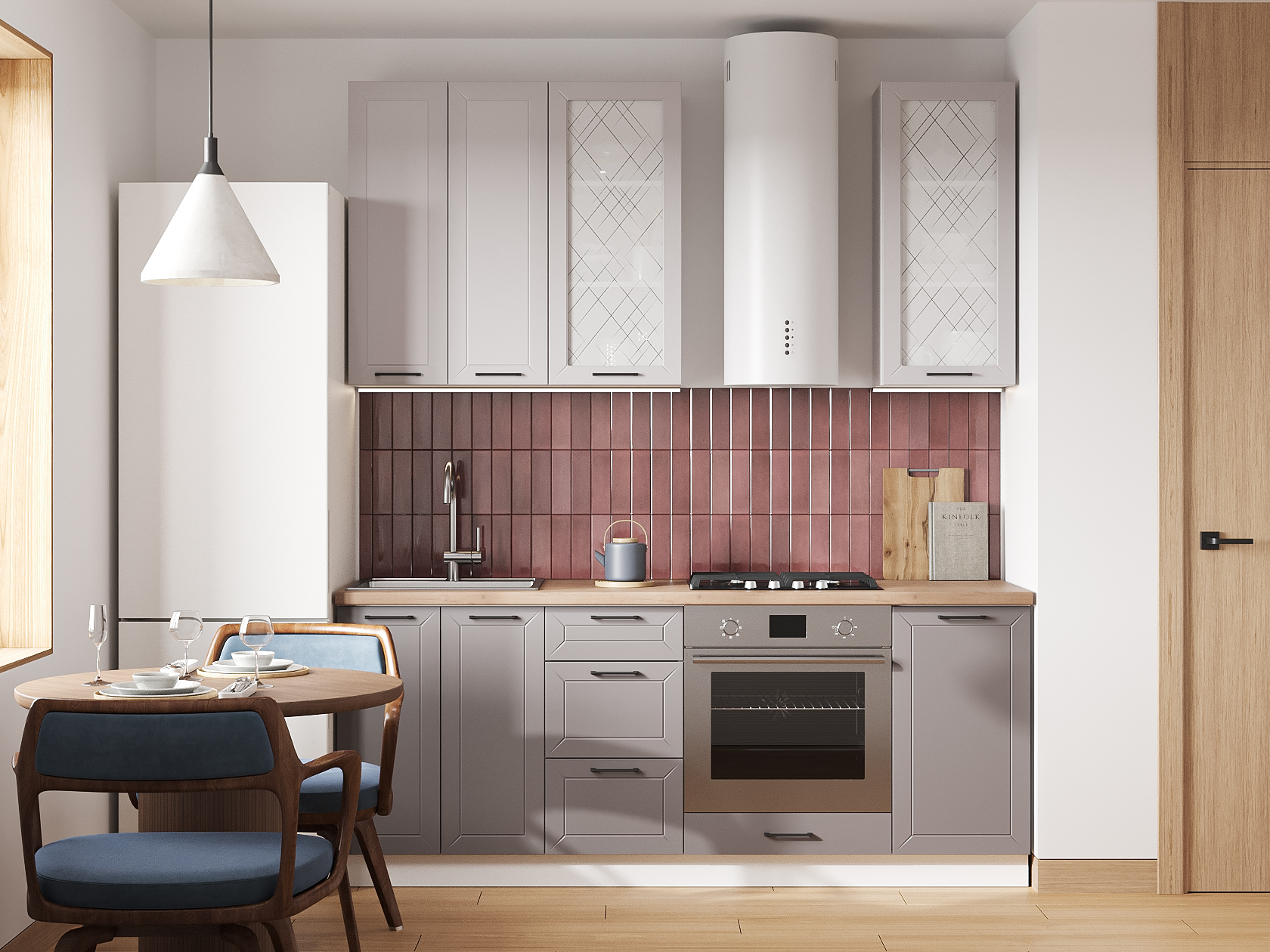Высокий кухонный гарнитур со стеклом Вектор 200 см Белый / Нео / Грей / Стекло
