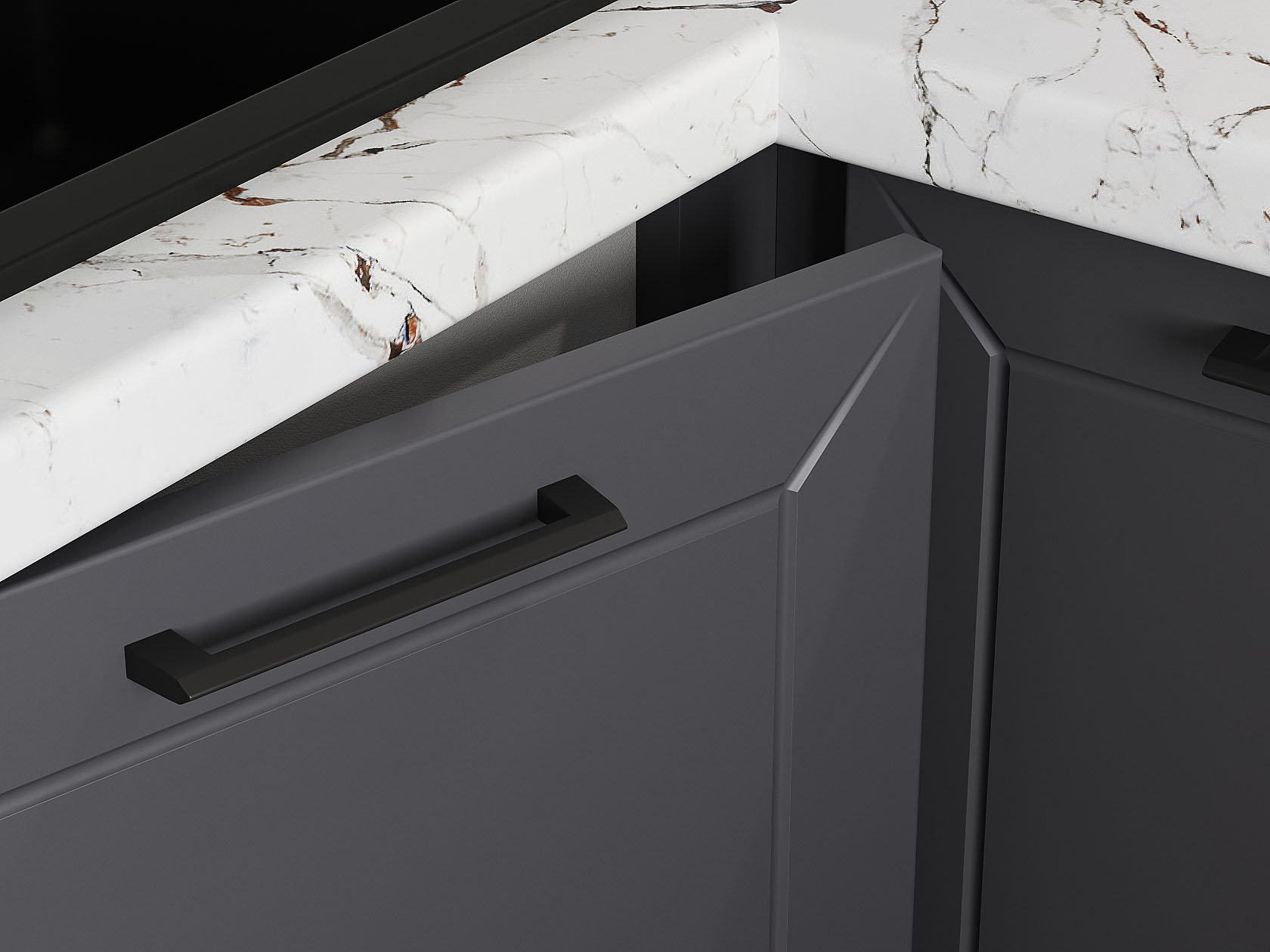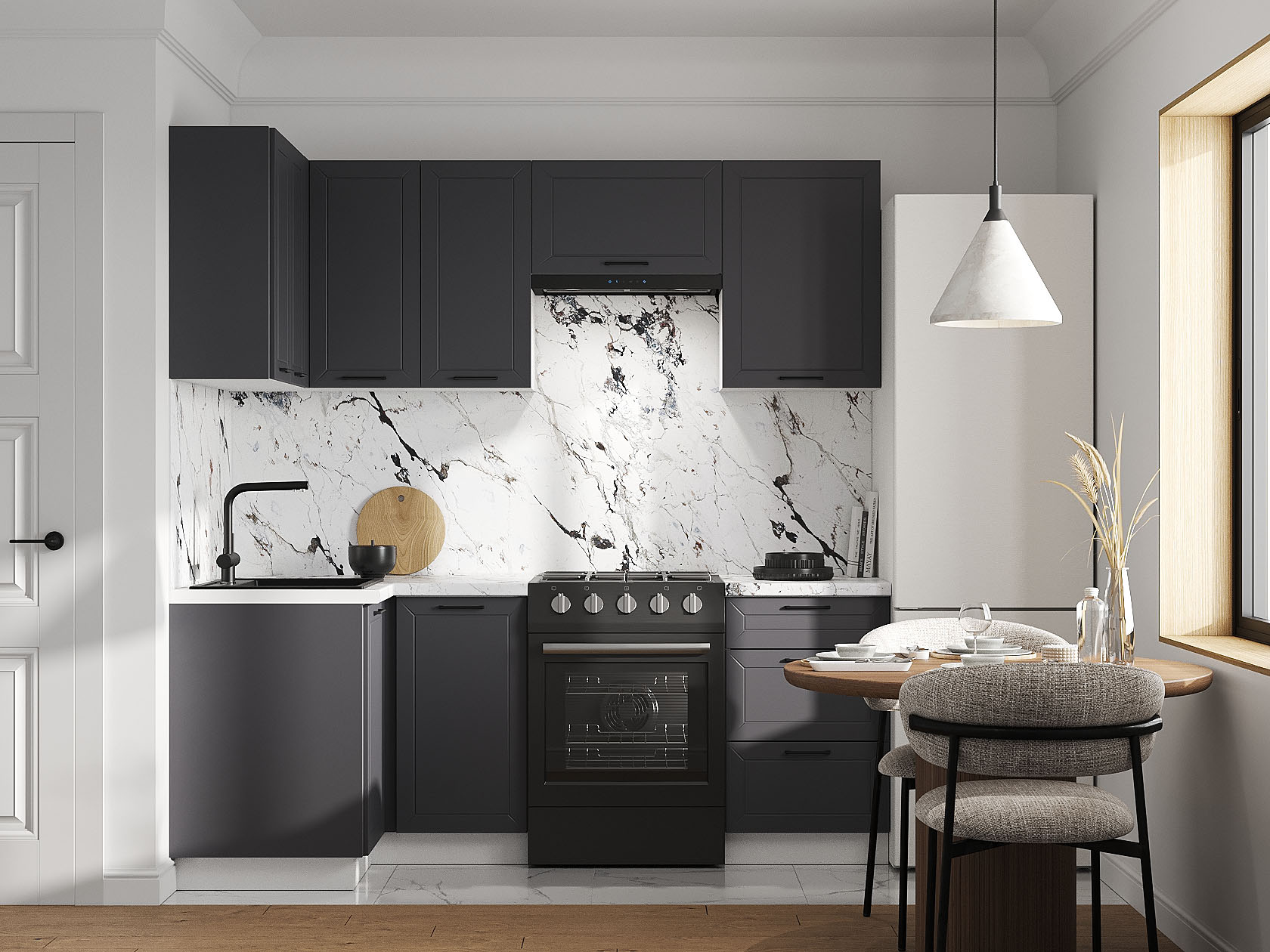 Кухонный гарнитур Вектор 210х100 см с антресолью Белый / Графит